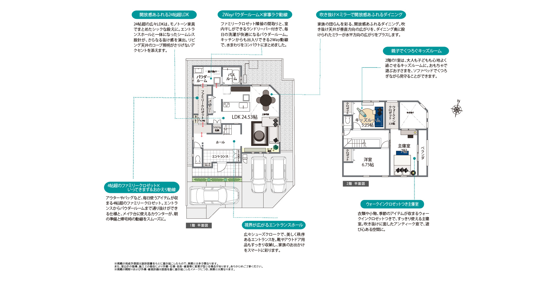 ※掲載の外観パース・内観写真は、当社施工例です。標準仕様とは異なるオプションを含みます。※掲載の人物写真・イラストはイメージです。※自由設計はモデルハウス・建売を除く区画が対象です。