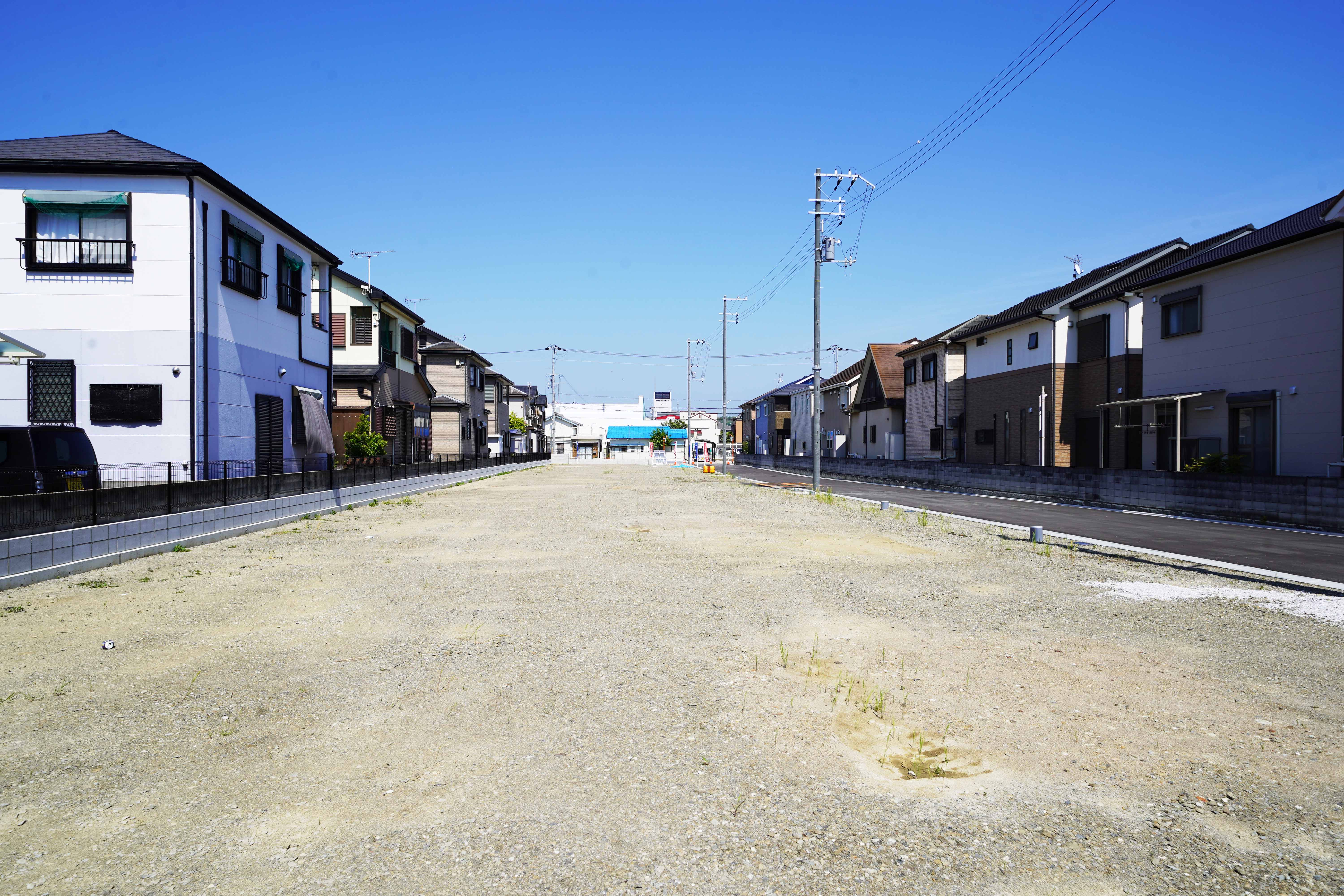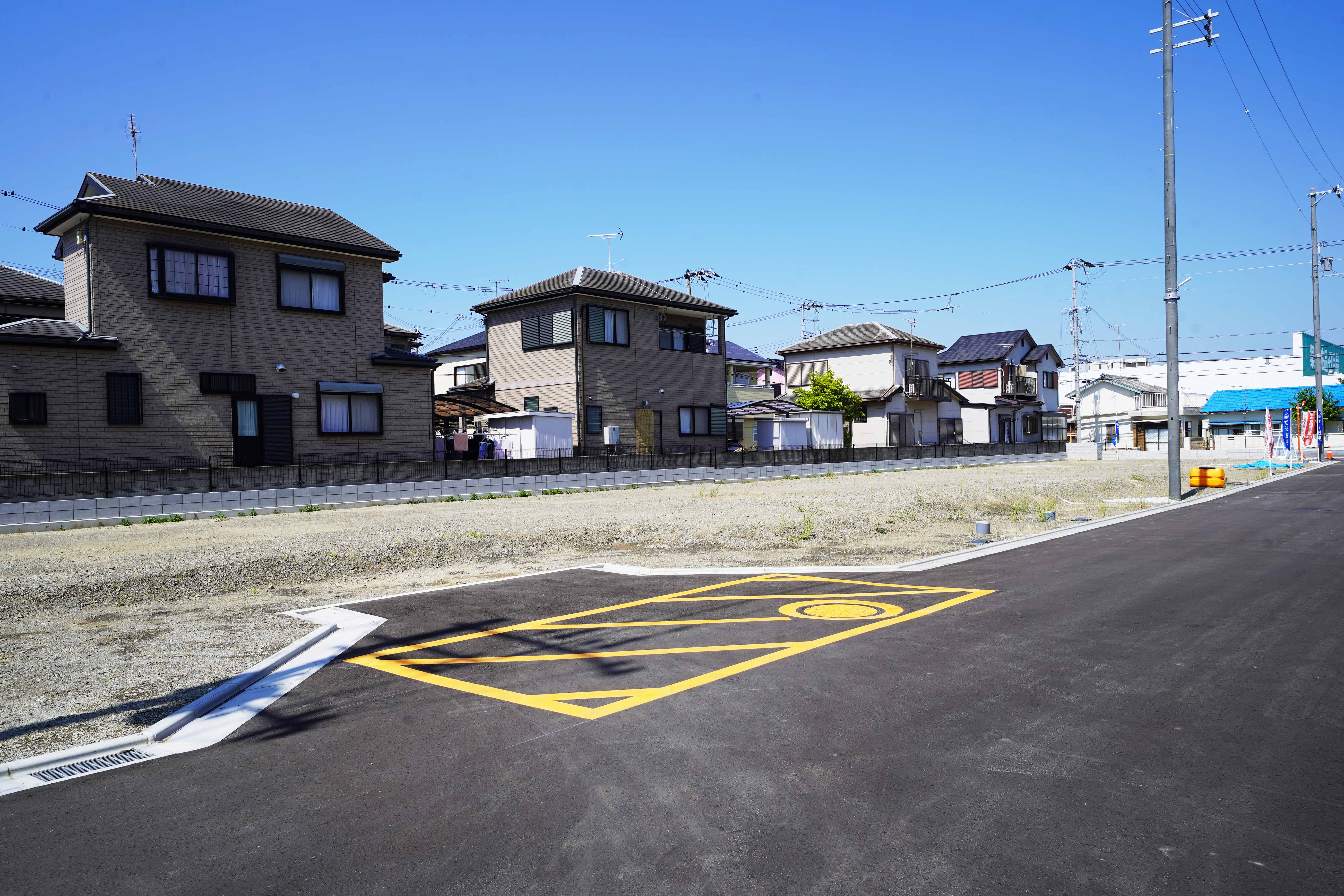 ※掲載の全体区画図イメージイラストは図面を基に描き起こしたもので、イメージにつき実際とは異なります。また、行政の指導等により変更となる場合がございます。フェンス等は一部省略しております。※現地土地・前面道路の写真は、2025年5月に撮影したものです。
