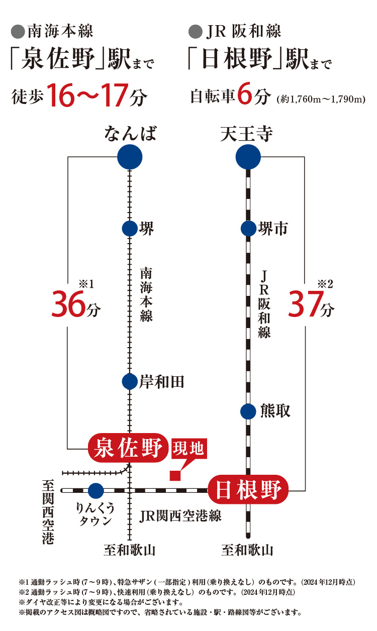 南海本線「泉佐野」駅 徒歩16分~17分 JR阪和線「日根野」駅 自転車6分(1760m~1790m)