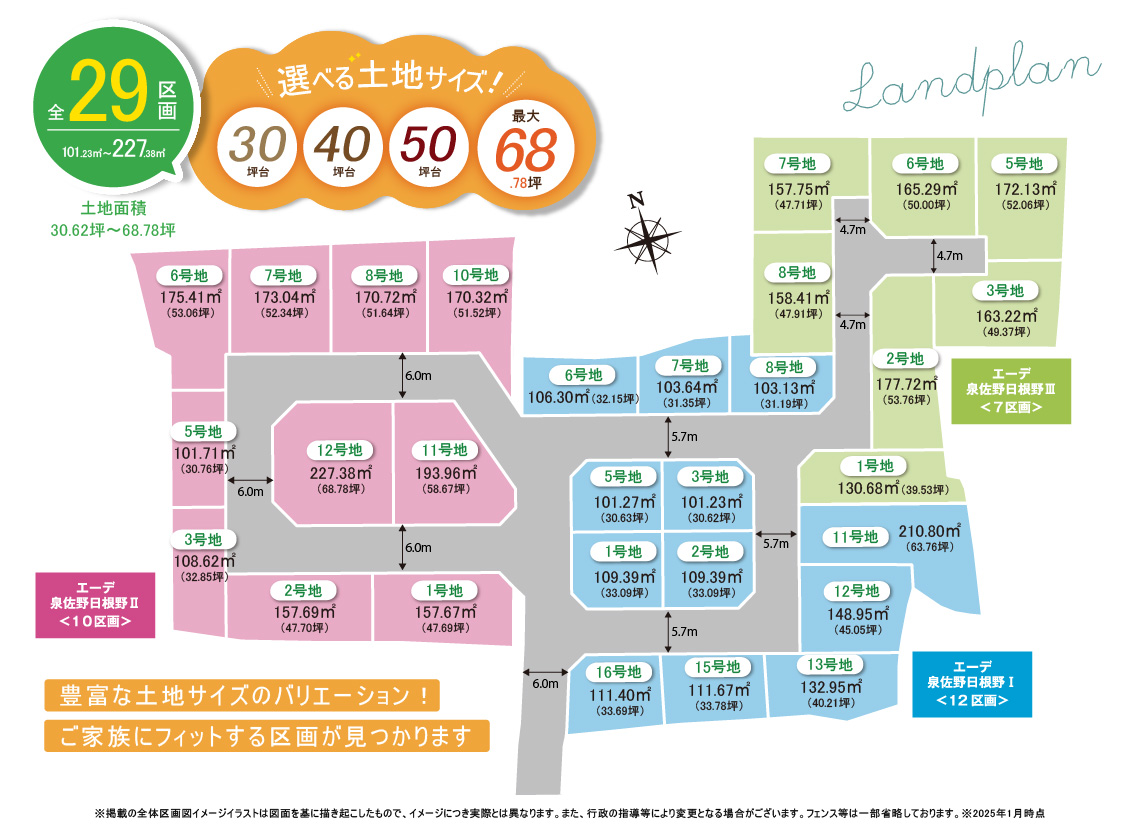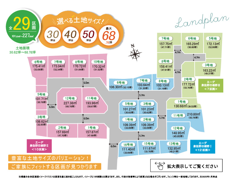 エーデ泉佐野日根野Ⅱ:101.71m2(30.76坪)~227.38m2(68.78坪)
