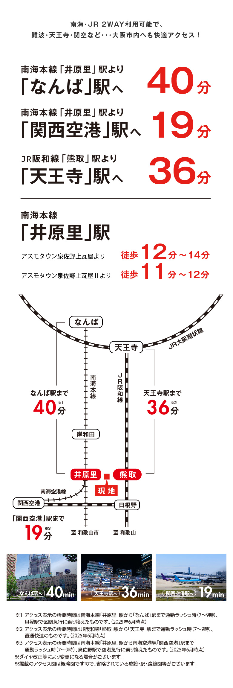 - アスモタウン泉佐野上瓦屋 : 62区画 南海本線「井原里」駅まで徒歩12分~14分