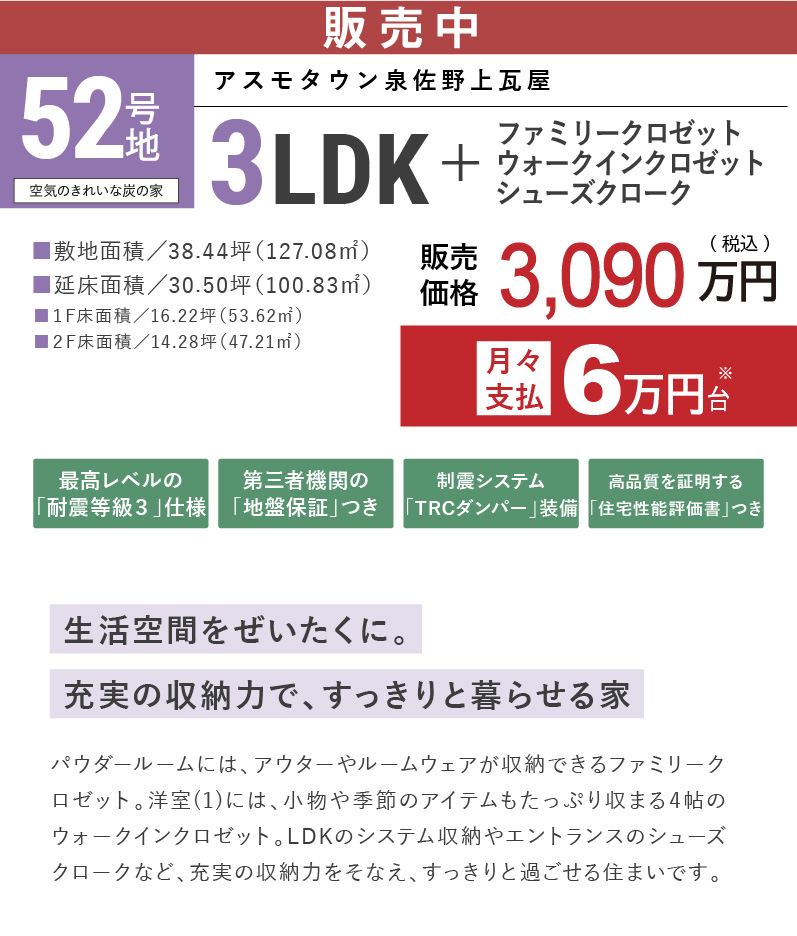 - NEW 【アスモタウン泉佐野上瓦屋】新築一戸建て52号地を11/8(土)より販売開始いたします!
