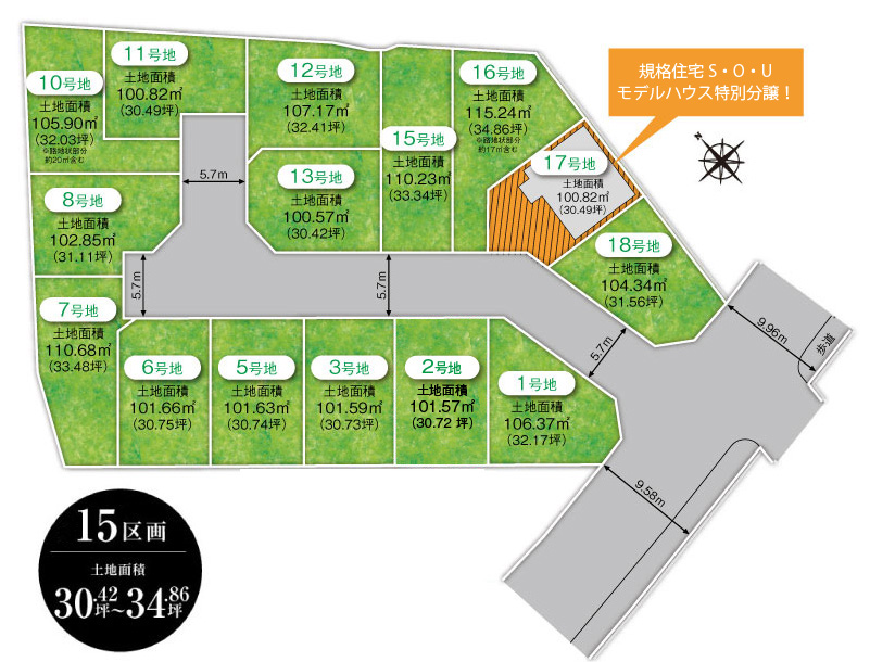 総区画数 16 区画 (うち当社分譲15区画) 用途地域 第一種住居地域 地目 宅地 建ペイ率 60%・70% 容積率 200% 電気・ガス 関西電力・都市ガス 水道・排水 公営水道・公共下水道 道路幅員 9.58m~9.96m(南側 42条1項1号)、5.7m(開発道路) 私道負担 無し 開発面積 2193.73m2 開発許可番号 堺宅地第A-16号(令和4年6月13日) 造成完了時期 完了済み(令和4年11月) 宅地面積 100.57m2(30.42坪)~115.24m2(34.86坪)※路地状部分約17m2(5.14坪)含む その他 準防火地域