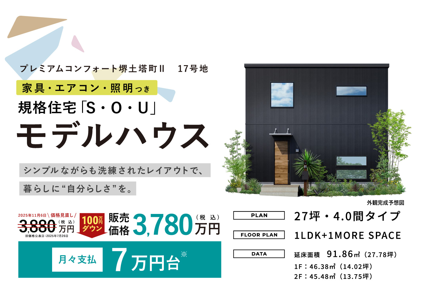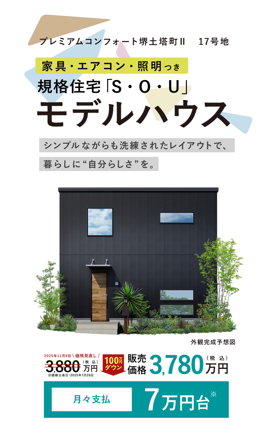 - NEW 家具・照明・エアコン付き現地モデルハウス、100万円プライスダウンにて特別分譲中!