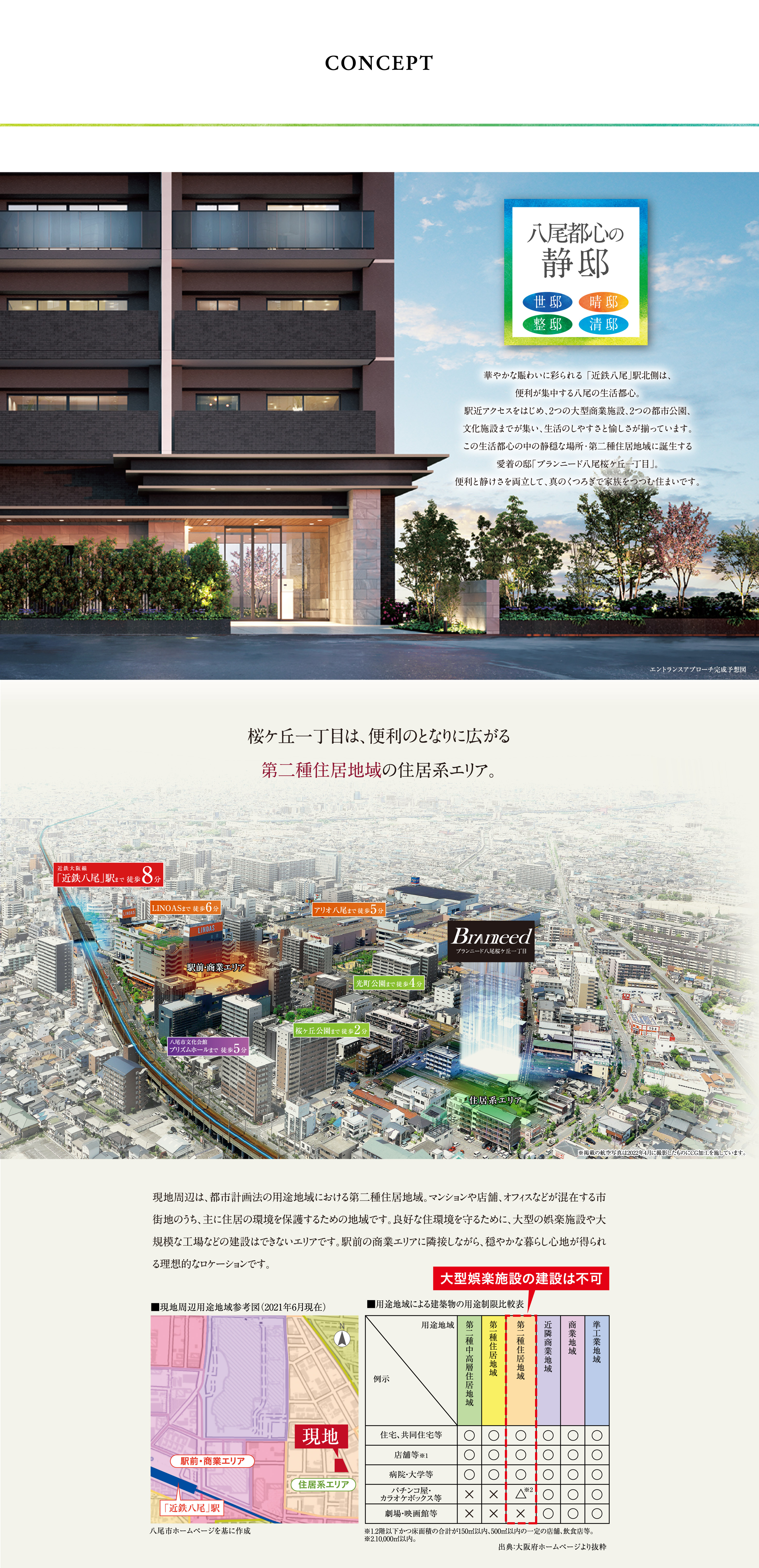 ※掲載の環境写真は、2022年4月・7月・11月に撮影されたものです。(一部CG加工済)※掲載の距離・分数表示は現地からの地図上での概測距離を、徒歩は80mを1分で算出し端数を切り上げしたものです。