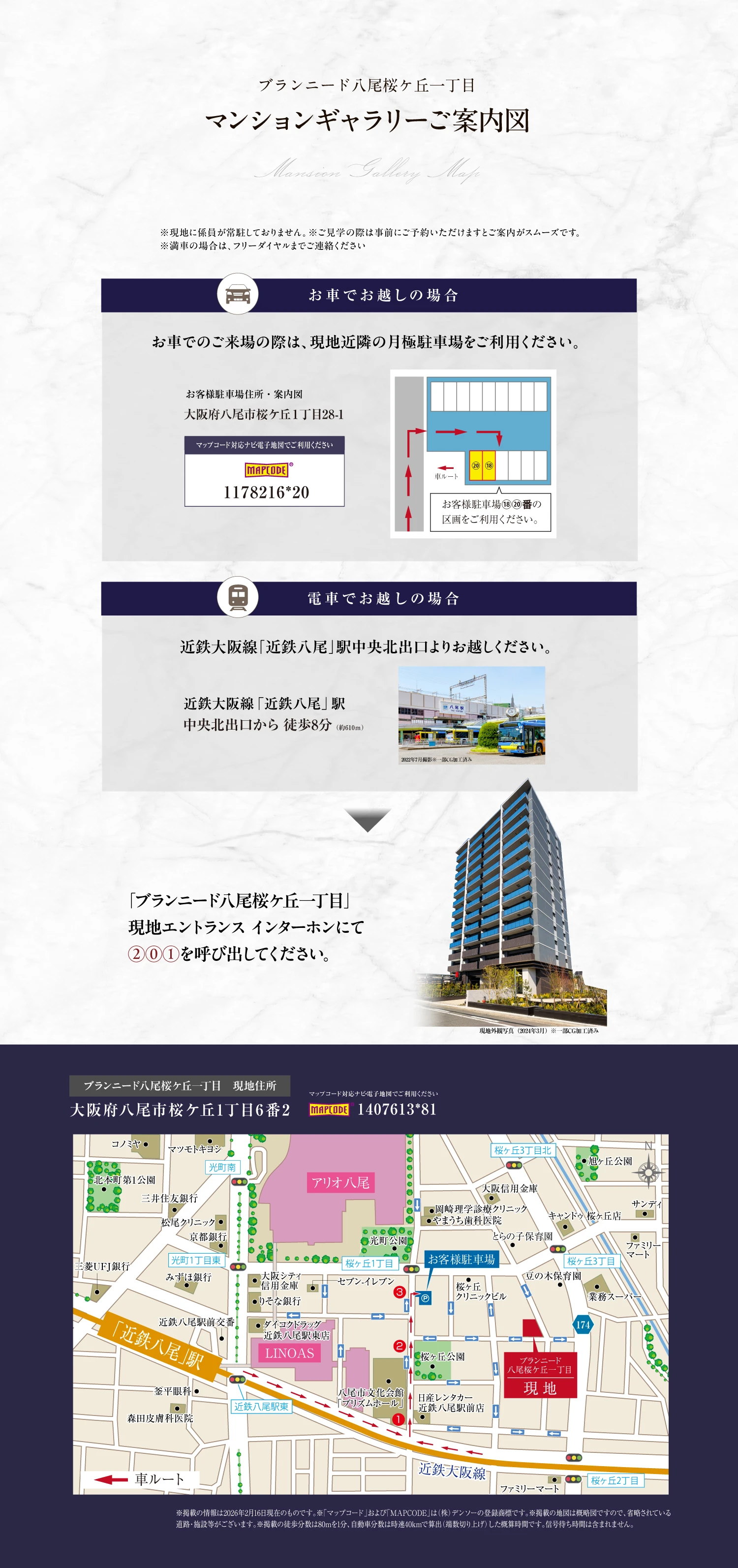 ブランニード八尾桜ケ丘一丁目〈現地・駐車場ご案内地図〉