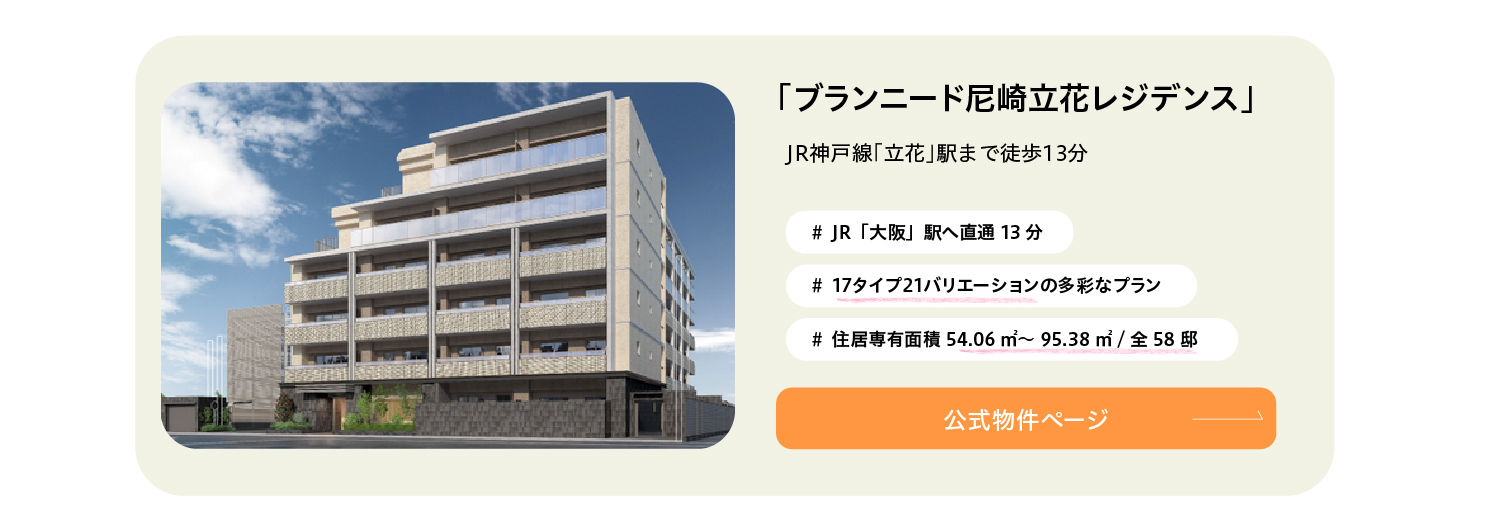 JR神戸線「立花」駅まで徒歩13分。通勤・通学に便利な立地にありながら、暮らしの快適さも大切にしたマンションです。