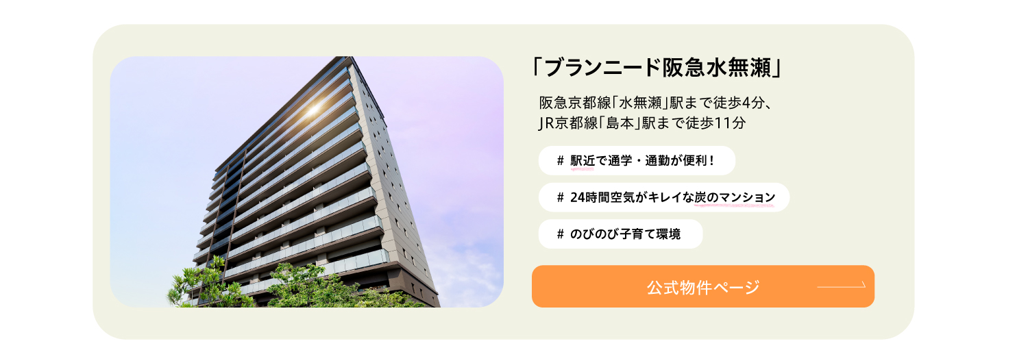 阪急京都線「水無瀬」駅まで徒歩4分、JR京都線「島本」駅まで徒歩11分という2路線が利用できる交通アクセスの良さが魅力。通勤や通学がスムーズになり、家族の時間にゆとりが生まれます。また、炭を活用したマンション仕様で、24時間空気がきれいに保たれる安心感が魅力。子育て世代にうれしい、健やかな暮らしを叶えてくれる住まいです。