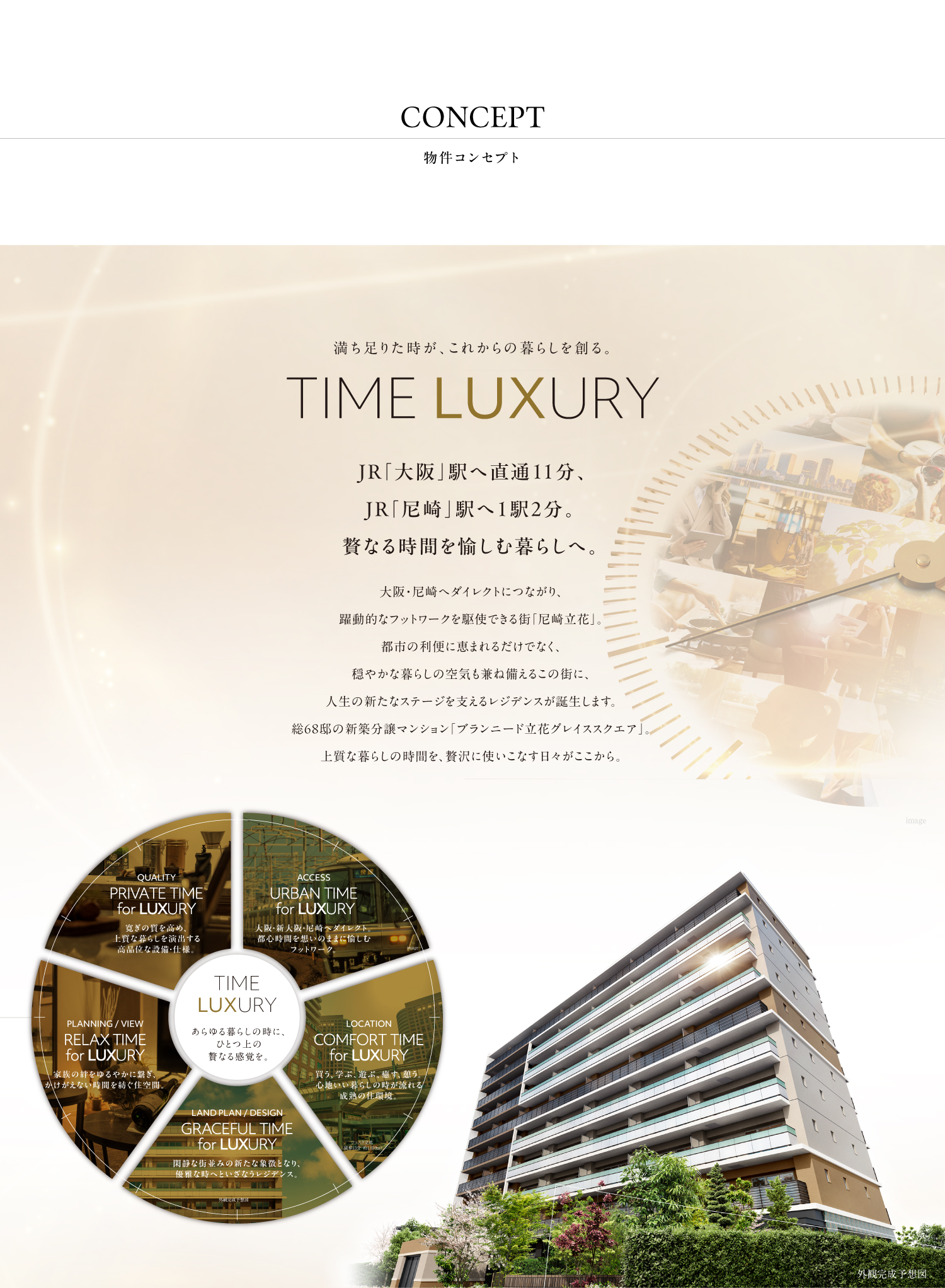 ※掲載の完成予想図は設計図を基に描き起こしたもので官公庁の指導、施工上の都合等により建物の形状・色調・植栽等に変更が生じる場合があります。 外観形状の細部、設備機器、周辺の建物・電柱・電線は省略または簡略化しております。 植栽は計画段階のもので変更になる場合があります。特定の季節、時期、または入居時を想定して描いたものではありません。葉の色合い、枝ぶりや樹形は想定であり、竣工時は完成予想図程度には成長していない場合があります。予めご了承ください。 ※実際の色調等は多少異なる場合があります。※掲載の室内写真はモデルルーム[Fタイプ・メニュー3]を2025年6月に撮影したものに一部CG処理を施したものです。有償オプション・家具・調度品・照明器具などは販売価格に含まれておりません。メニュープラン、カラーセレクトおよびオプション(有償)には申込期限がございます。また、設備・仕様等が変更になる場合がございます。