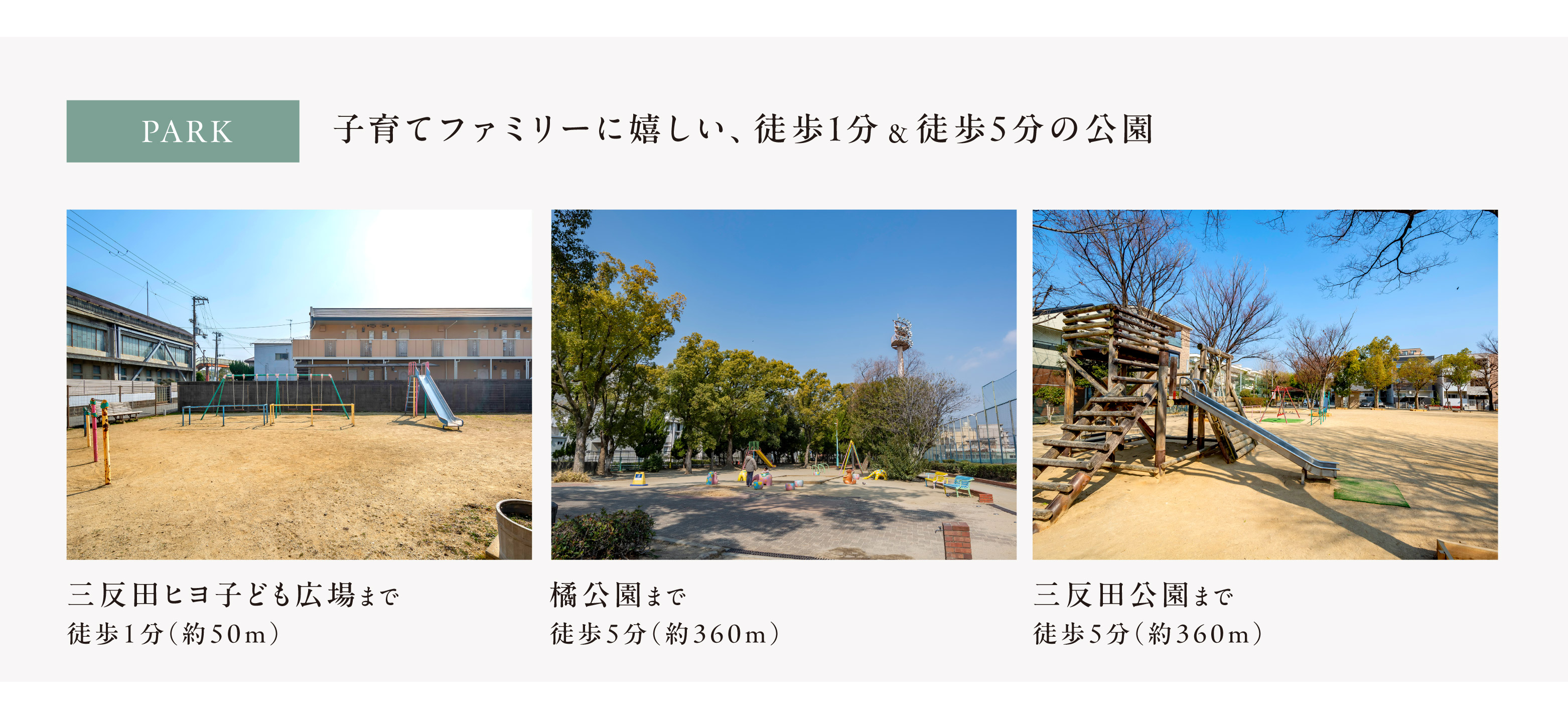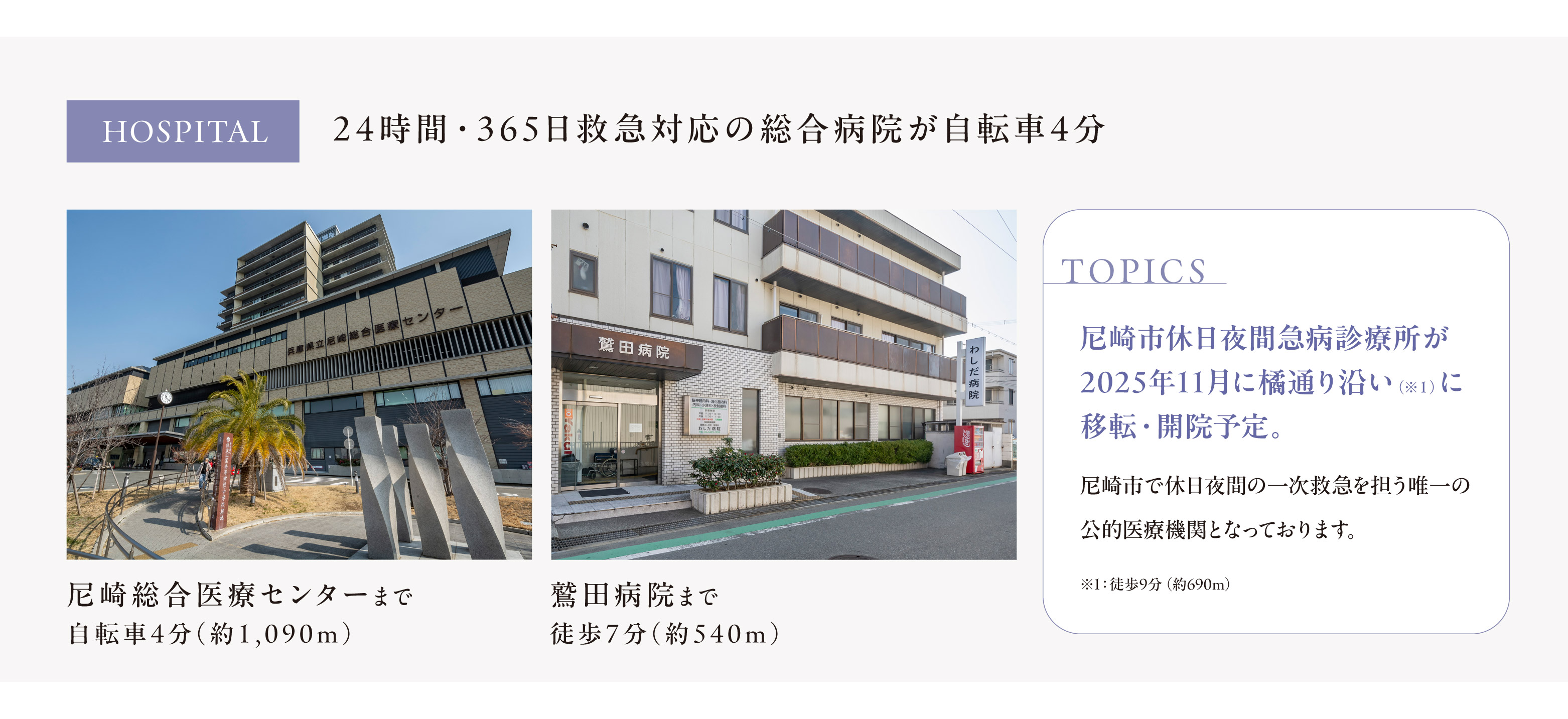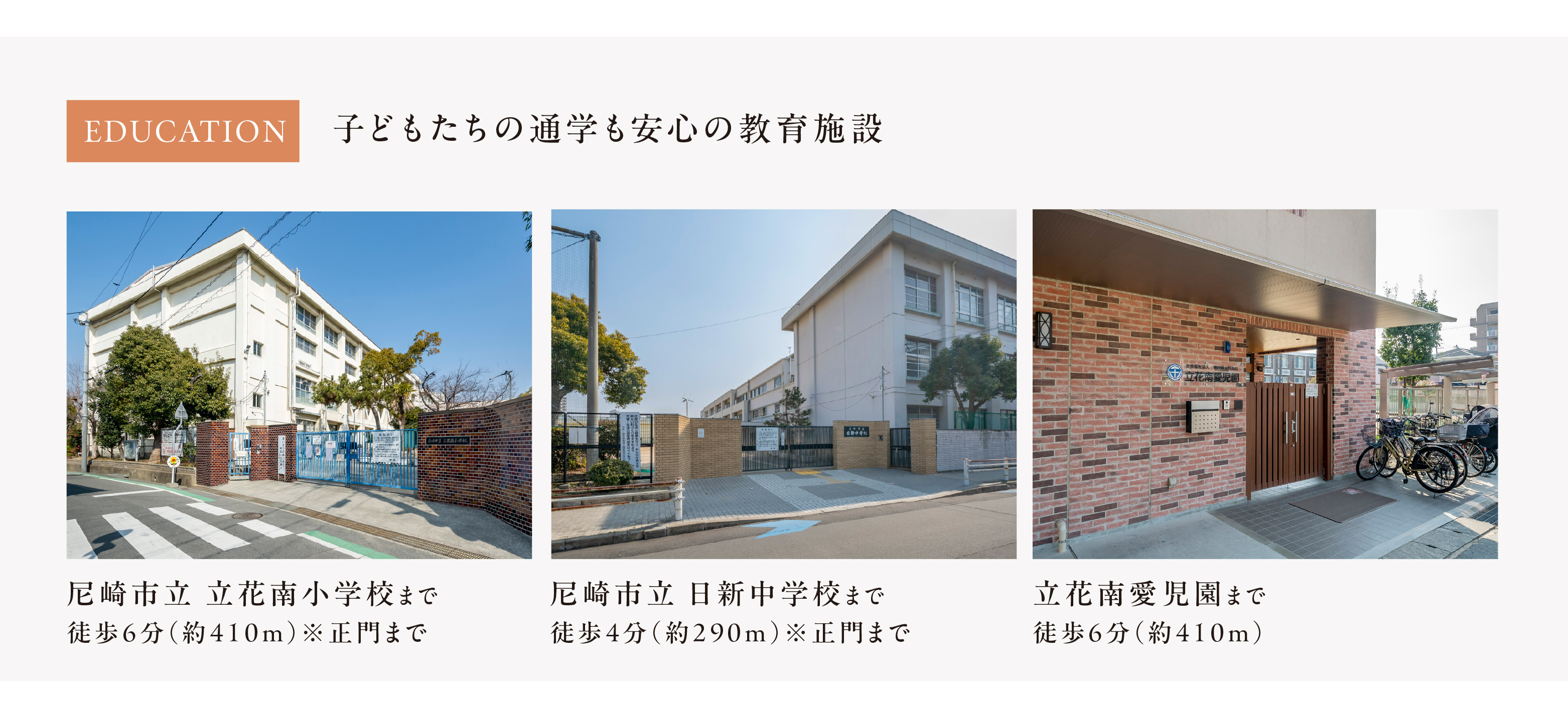 ※徒歩分数は80mを1分、自転車分数は300mを1分として算出(端数切り上げ)した概算時間です。※車の所要時間は地図上での計測距離を時速40kmで算出したもので、諸々の交通事情により異なる場合がございます。※掲載の環境写真は2025年2月に撮影したものです。(一部CG加工済み)