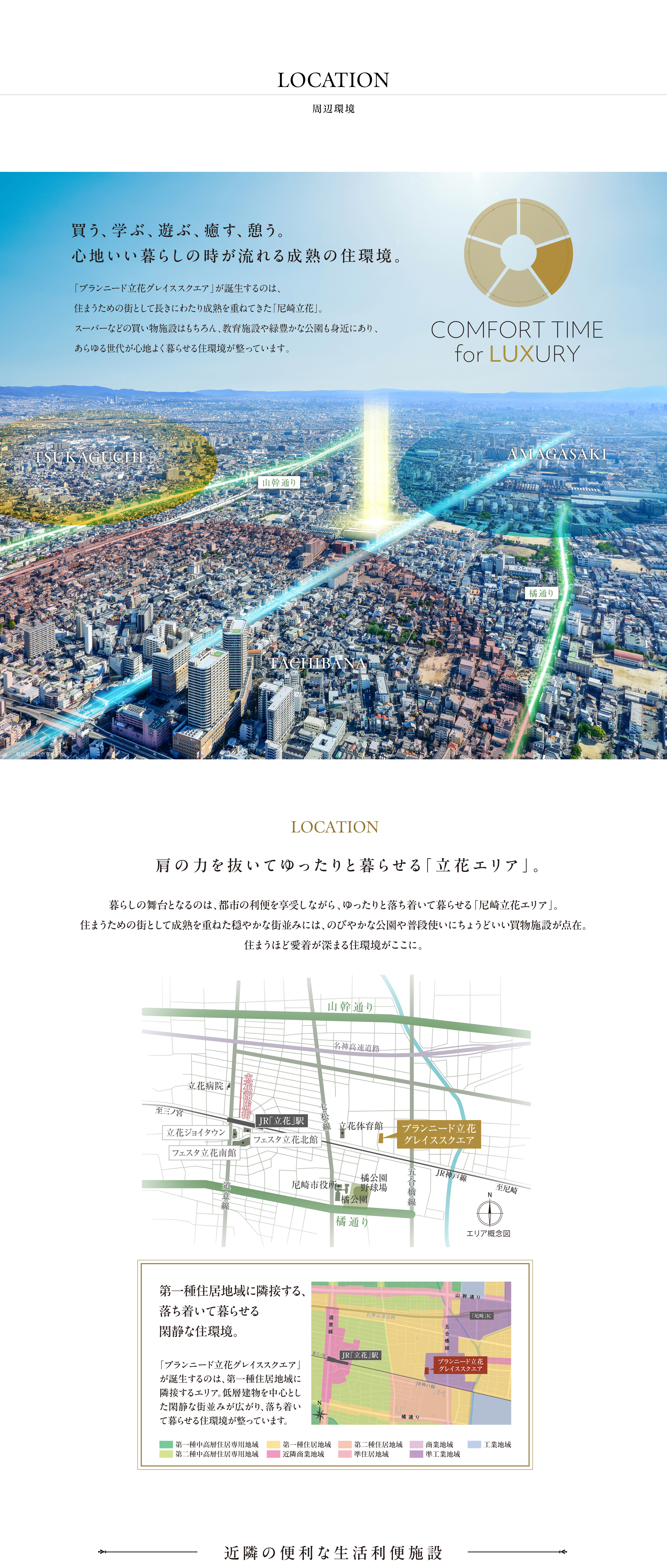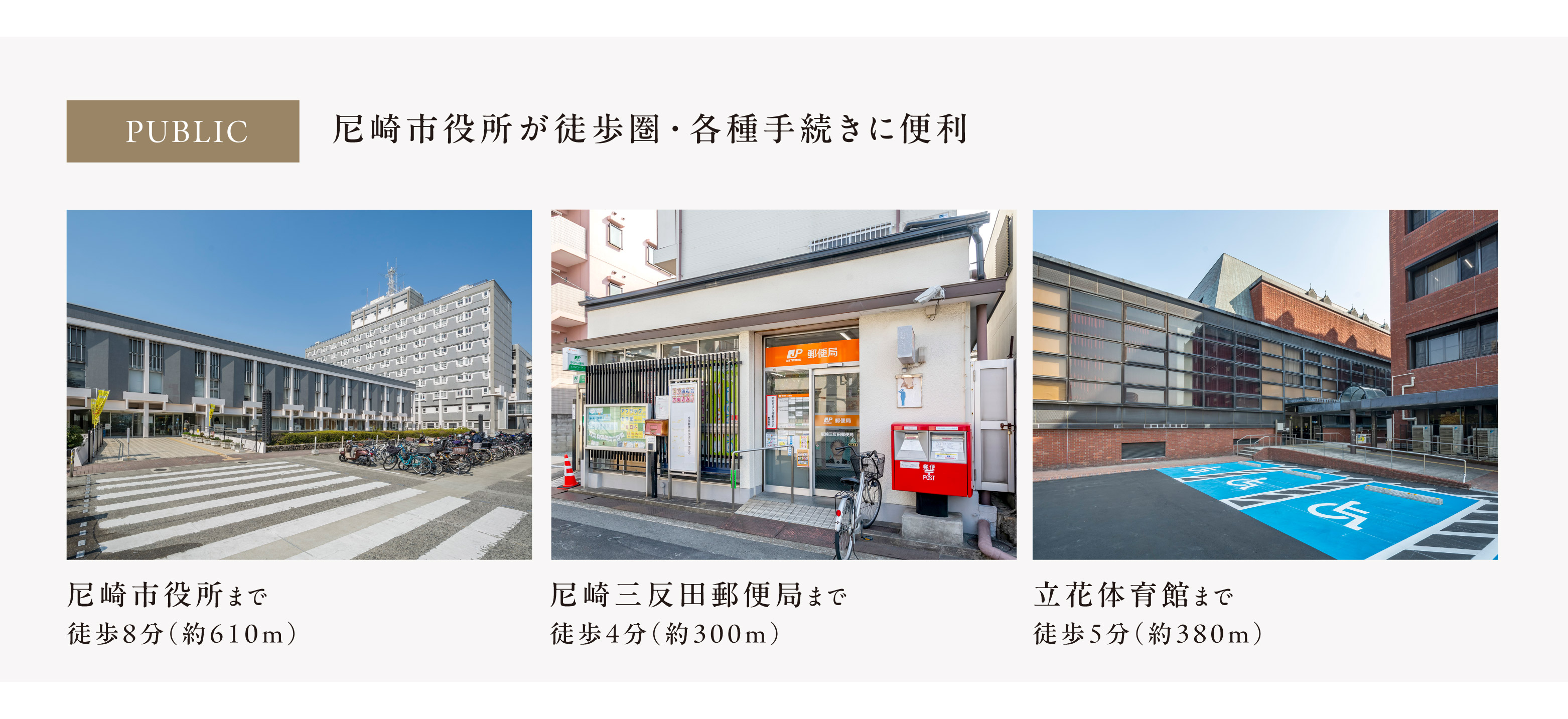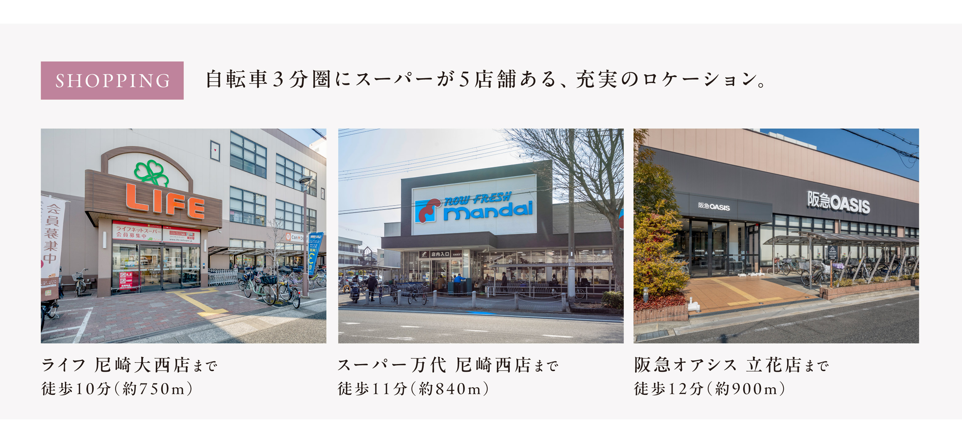 ※徒歩分数は80mを1分、自転車分数は300mを1分として算出(端数切り上げ)した概算時間です。※車の所要時間は地図上での計測距離を時速40kmで算出したもので、諸々の交通事情により異なる場合がございます。※掲載の環境写真は2025年2月に撮影したものです。(一部CG加工済み)