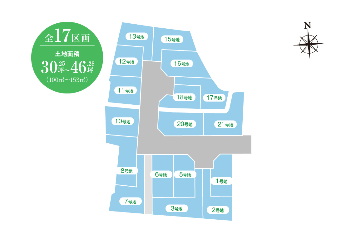 総区画数 17 区画 用途地域 第二種中高層住居専用地域 地目 宅地 建ペイ率 60% 容積率 200% 電気・ガス 関西電力・都市ガス 水道・排水 公営水道・公共下水道 開発面積 2993.75m2 宅地面積 100㎡ (30.25坪) ~ 153㎡ (46.28坪) 私道負担 無し 道路幅員 5.75m~5.95(南側市道) 4.7m(北東側市道) 4.00m~4.95m(東側市道) 6.7m(開発道路) 開発許可番号 堺宅地第A-72号(令和8年3月2日) 造成完了時期 2027年2月 その他 準防火地域、第二種高度地区 売主 フジ住宅株式会社