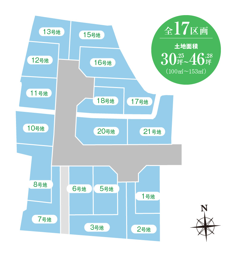 問い合わせ 0120-24-0413 ※現在造成工事中に付き、販売土地面積が多少増減する場合があります。あらかじめご了承下さい。 ※自由設計について、当社の定める構造及び仕様の範囲内で自由に設計できますが、一部お客様のご要望にお応え出来ない場合がありますので、あらかじめご了承ください。 ※この土地は土地売買契約後3ヶ月以内に当社と建築請負契約をむすんで頂くことを停止条件として販売します。この期間内に建築請負契約が成立しない場合は、売買契約はなかったことになり申し込み金その他お預かりした金員は全額無条件にて返還します。 ※諸費用/自治会費、登記費用、並びに住宅ローンご利用の方は利用するローンの規定と利用形態に応じた保証料・事務手数料及び火災保険料等が必要になります。 ※外構・付帯工事費には、消費税(10%)相当額が含まれます。 ※【予告広告】販売を開始するまでは、契約または予約のお申込みはできません。また、申込順位の確保に関する措置を講じる事はできません。予めご了承ください。すべての予定販売区画を一括して販売するか又は数期に分けて販売するかは確定しておりませんので、当該予告広告以降に行なう本広告において販売区画数を明示させていただきます。 ※本物件は確定測量および分筆登記が未了のため分筆登記完了後の確定土地面積と上記土地面積とに多少の差異が生じます。