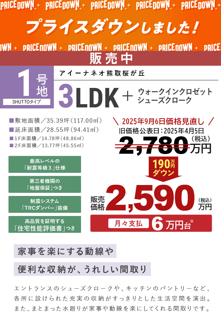 - 【アイーナネオ熊取桜が丘】9/6(土)より190万円プライスダウンで販売開始♪
