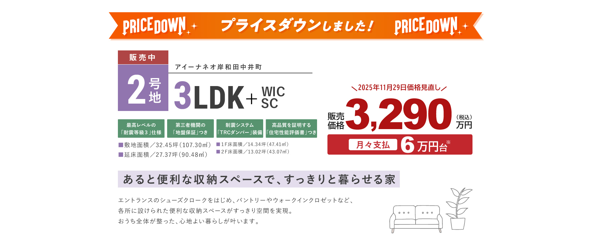 - 【 アイーナネオ岸和田中井町】1号地・2号地プライスダウンしました!