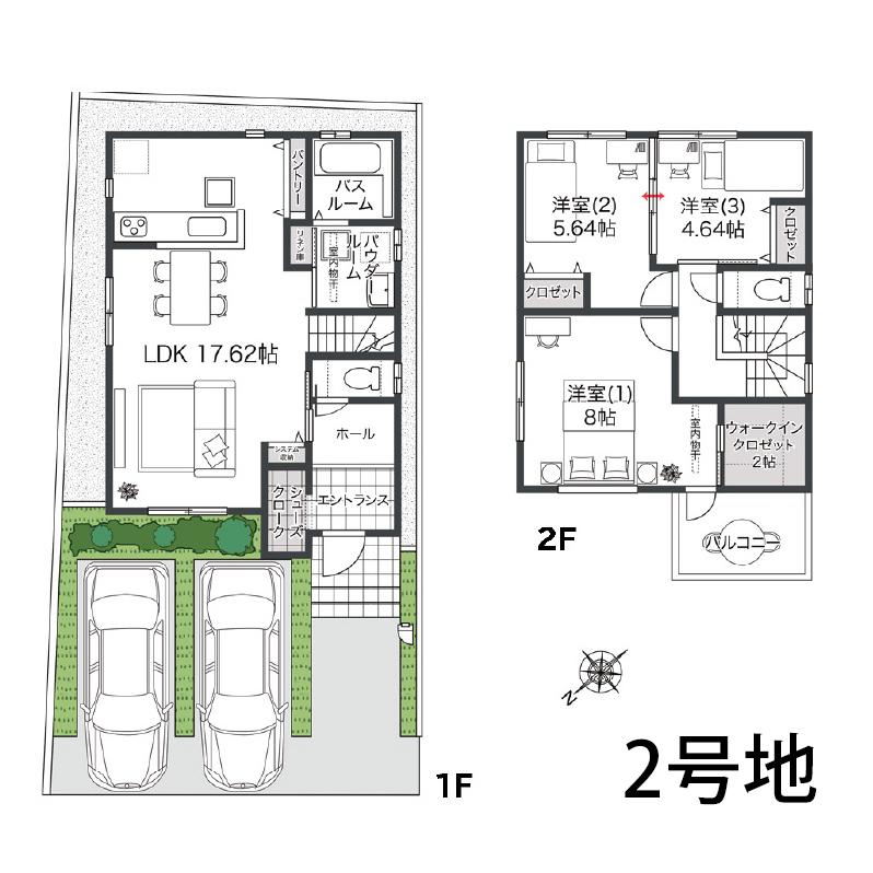 ※間取図・外構等は図面をもとに描いたイメージにつき、実際とは一部異なる場合があります。家具・車の表記はイメージ配置になり、実際には付きません。(2025年6月時点)