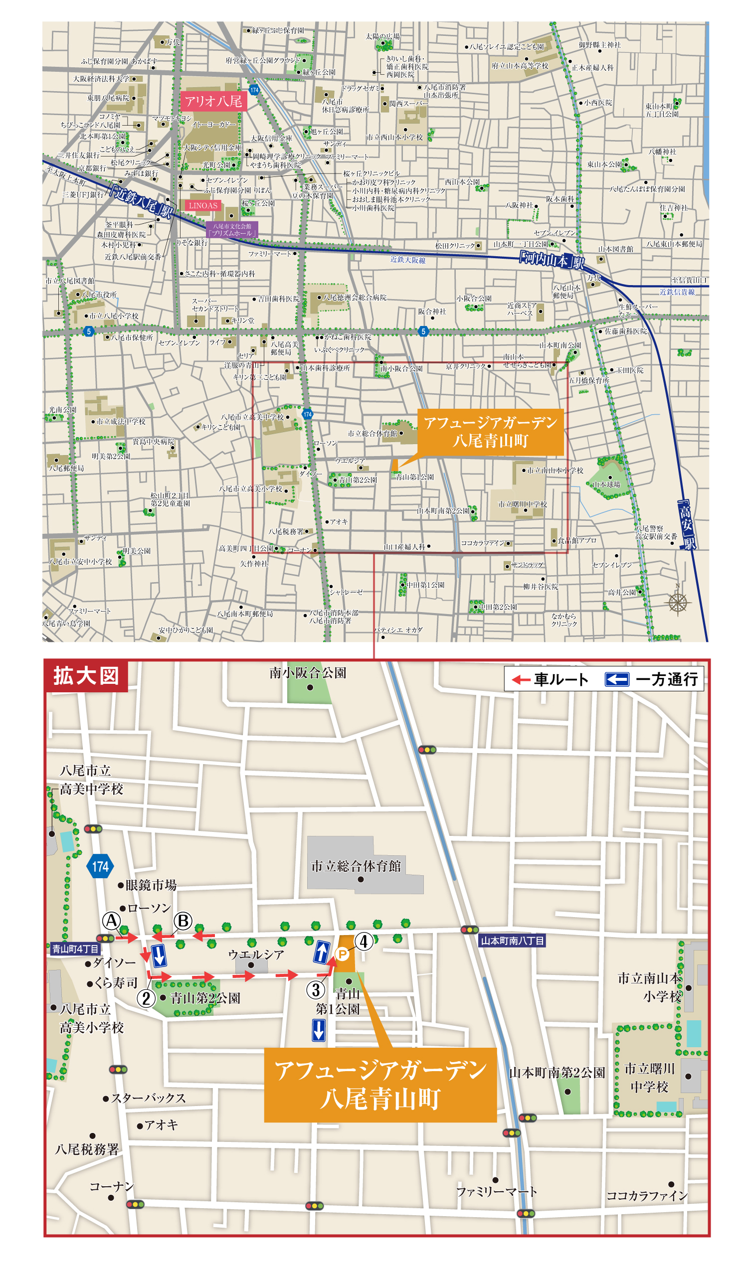 「アフュージアガーデン八尾青山町」現地案内図