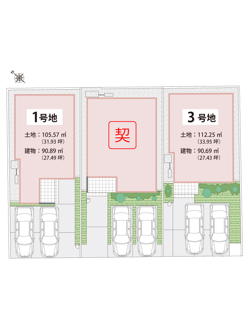 販売戸数 2 戸 販売価格 3,130万円・3,190万円 外構・付帯工事費 販売価格に含む 間取り 1号地:3LDK+SC+WIC+FC、3号地:3LDK+SC+WIC 建物面積 90.69m2(27.43坪)・90.89m2(27.49坪) 土地面積 105.57m2(31.93坪)・112.25m2(33.95坪) 建築確認番号 1号地:R07確認建築近確0000800号(2025年7月23日)、3号地:R07確認建築近確0000803号(2025年7月23日) 販売スケジュール 先着順 取引条件の有効期限 2026年1月20日 入居時期 完成後3ヶ月 構造・規模 木造2階建て 完成時期(築年月) 1号地:2025年12月、3号地:2026年2月 売主 フジ住宅株式会社 問い合わせ 0120-24-0413 ※諸費用/自治会費、登記費用、並びに住宅ローンご利用の方は利用するローンの規定と利用形態に応じた保証料・事務手数料及び火災保険料等が必要になります。 ※先着順につき、契約済の場合がございます。あらかじめご了承ください。 ※WIC=ウォークインクロゼット、SC=シューズクローク、FC=ファミリークロゼット