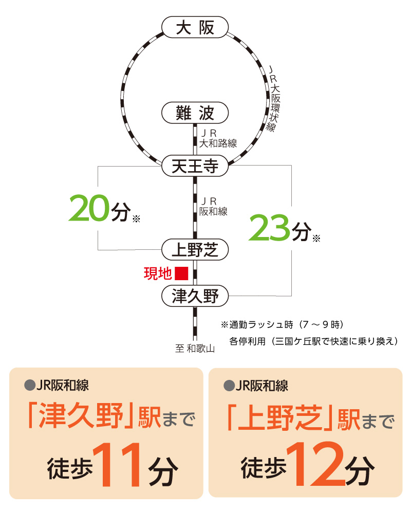 JR阪和線「津久野」駅 徒歩11分 JR阪和線「上野芝」駅 徒歩12分