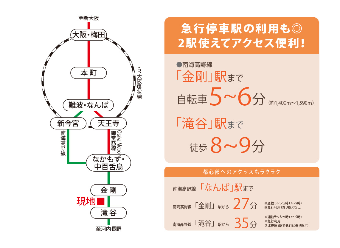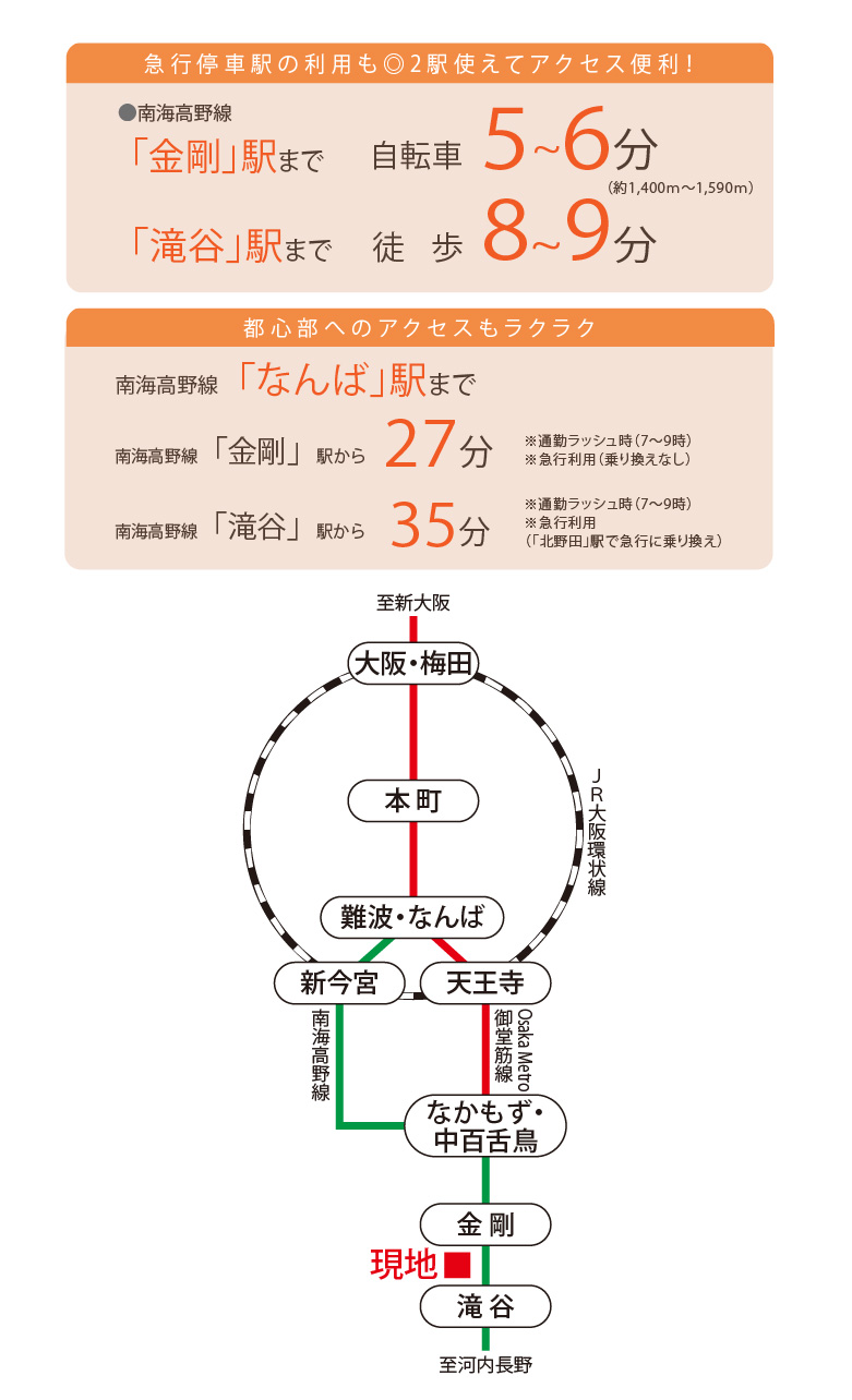 南海高野線「滝谷」駅まで徒歩8分~9分、「金剛」駅まで徒歩18分~20分 |