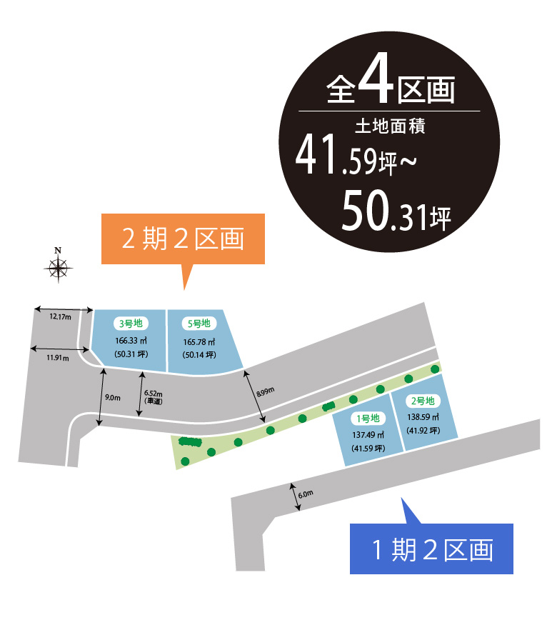 | 土地面積 | 137.49m2(41.59坪)~166.33m2(50.31坪) |