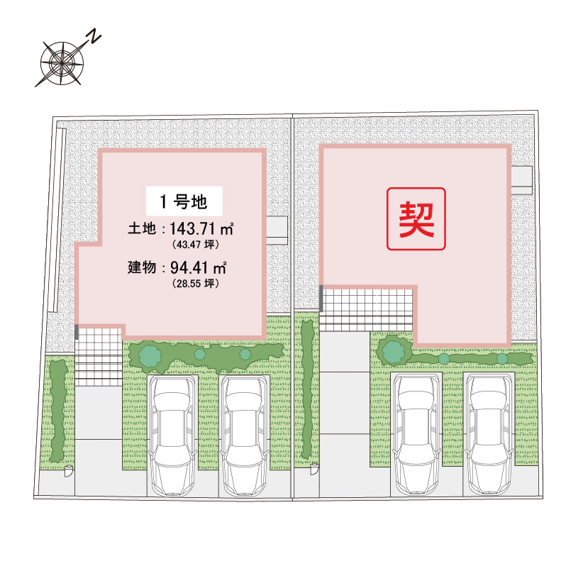 ※掲載の全体区画図イメージイラストは図面を基に描き起こしたもので、イメージにつき実際とは異なります。また、行政の指導等により変更となる場合がございます。フェンス等は一部省略しております。