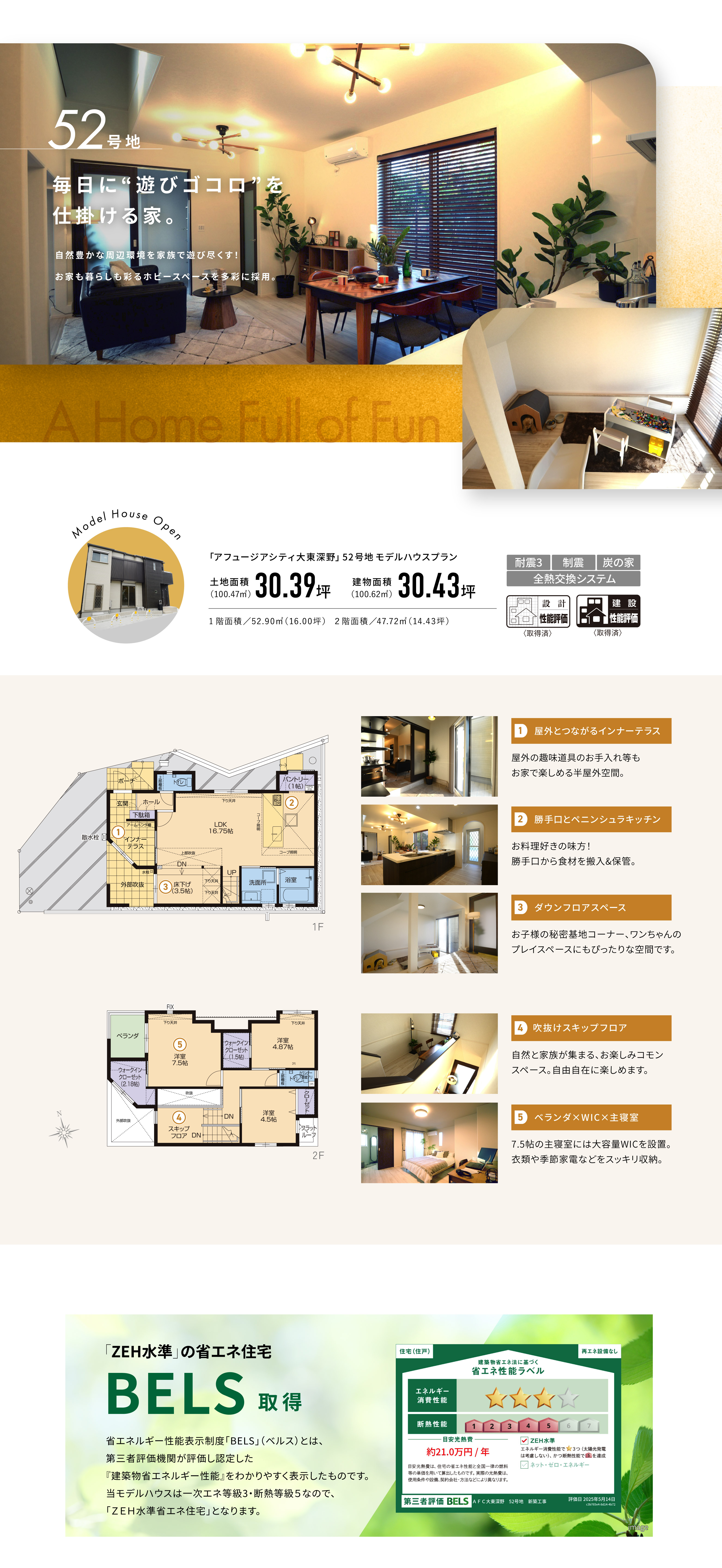 ※掲載の外観・内観写真、間取り図は「アフュージアシティ大東深野」52号地モデルハウスのものです。(2025年10月、11月撮影/一部CG加工およびオプションを含む)