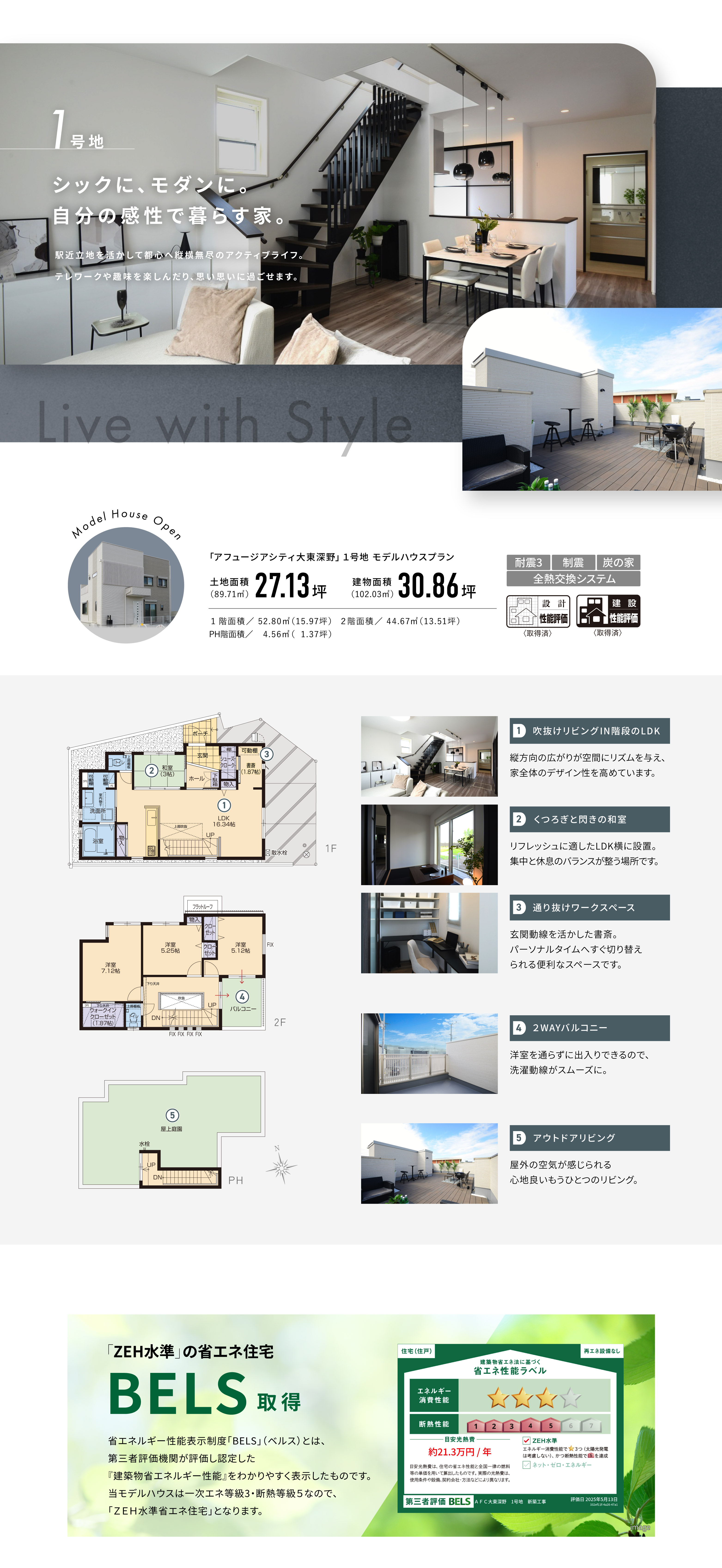 ※掲載の外観・内観写真、間取り図は「アフュージアシティ大東深野」1号地モデルハウスのものです。(2025年10月撮影/一部CG加工およびオプションを含む)