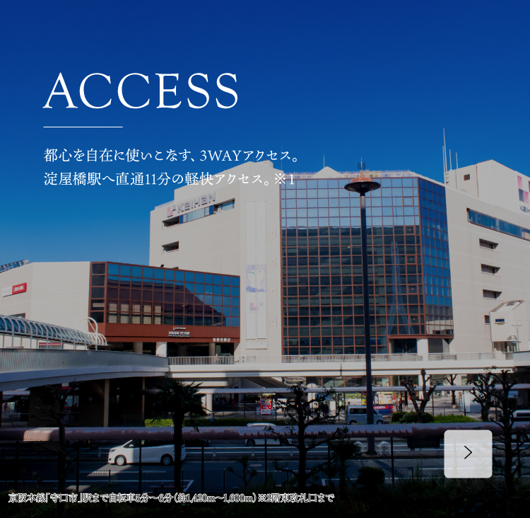 ※掲載の電車所要時間は通勤時のもので、時間帯により多少異なります。また乗り換え・待ち時間を含みます。通勤時は7:00AM~9:00AMに目的地に到着する最速の所要時間を表記しています。