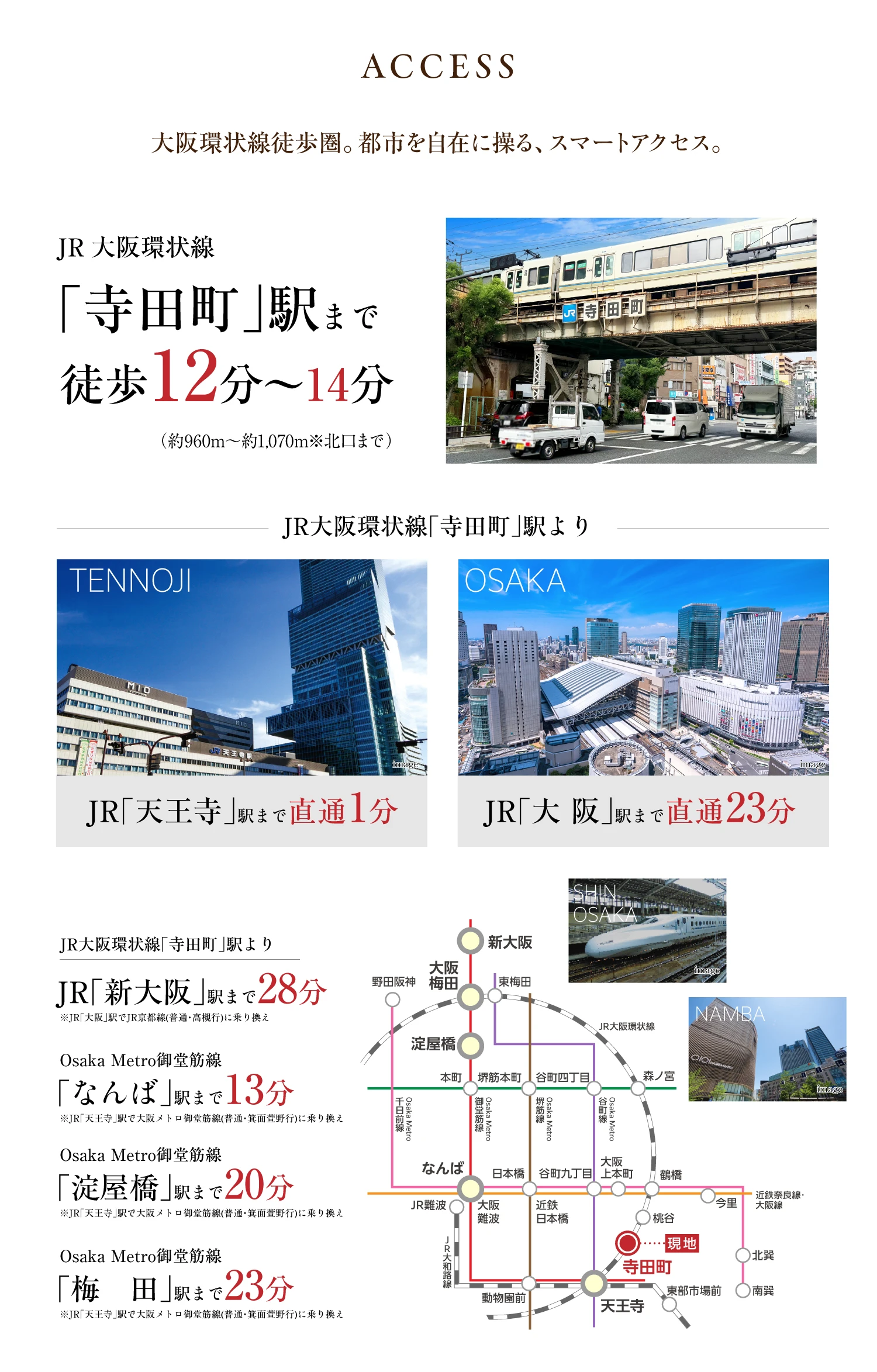 ※掲載の電車所要時間は通勤時のもので、時間帯により多少異なります。また乗り換え・待ち時間を含みます。通勤時は7:00AM~9:00AMに目的地に到着する最速の所要時間を表記しています。また、所要時間は2025年10月現在のもので、以降各鉄道会社によって変更される場合があります。