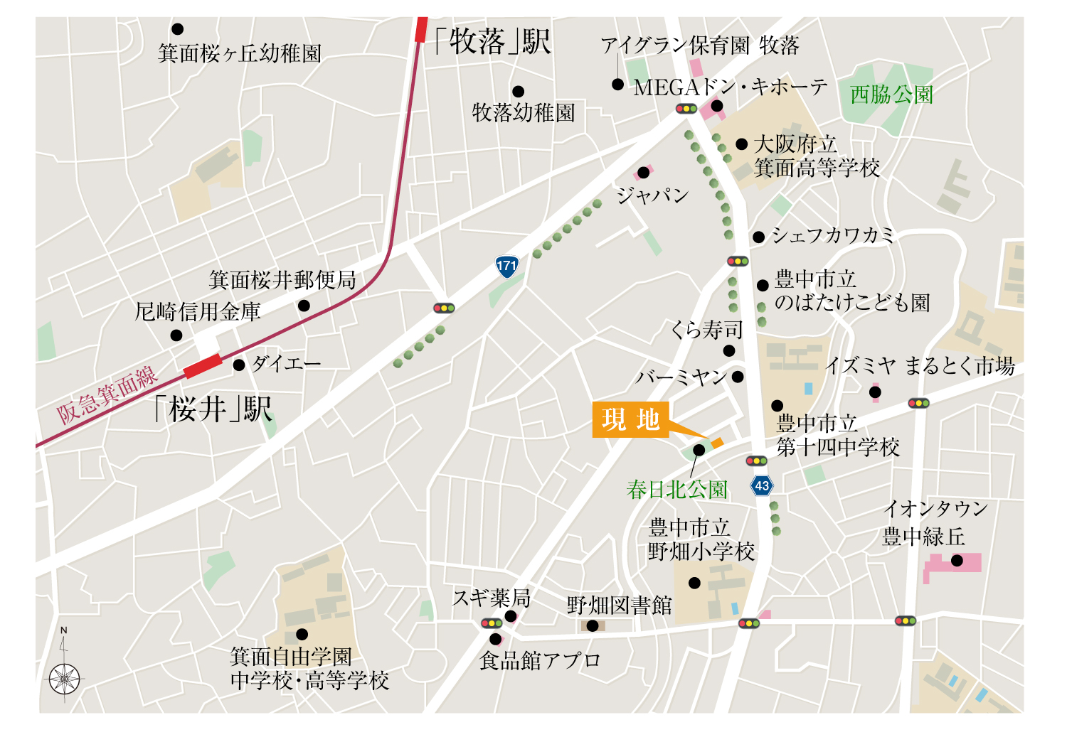 「アフュージアガーデン豊中春日町Ⅱ」現地案内図