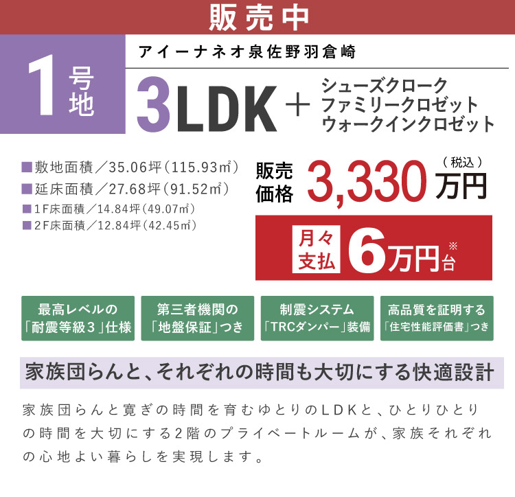 - NEW 【アイーナネオ泉佐野羽倉崎】新築一戸建て1号地が11/29(土)より販売開始いたします!