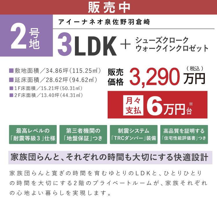 - NEW 【アイーナネオ泉佐野羽倉崎】新築一戸建て2号地が11/29(土)より販売開始いたします!
