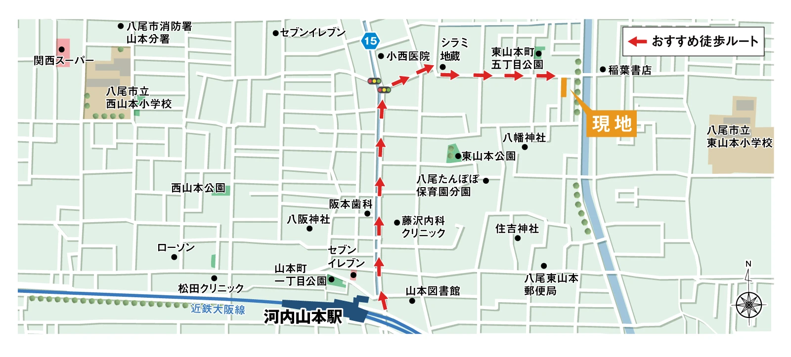 「(仮称)八尾市東山本町邸別設計タウンPJ」現地案内図