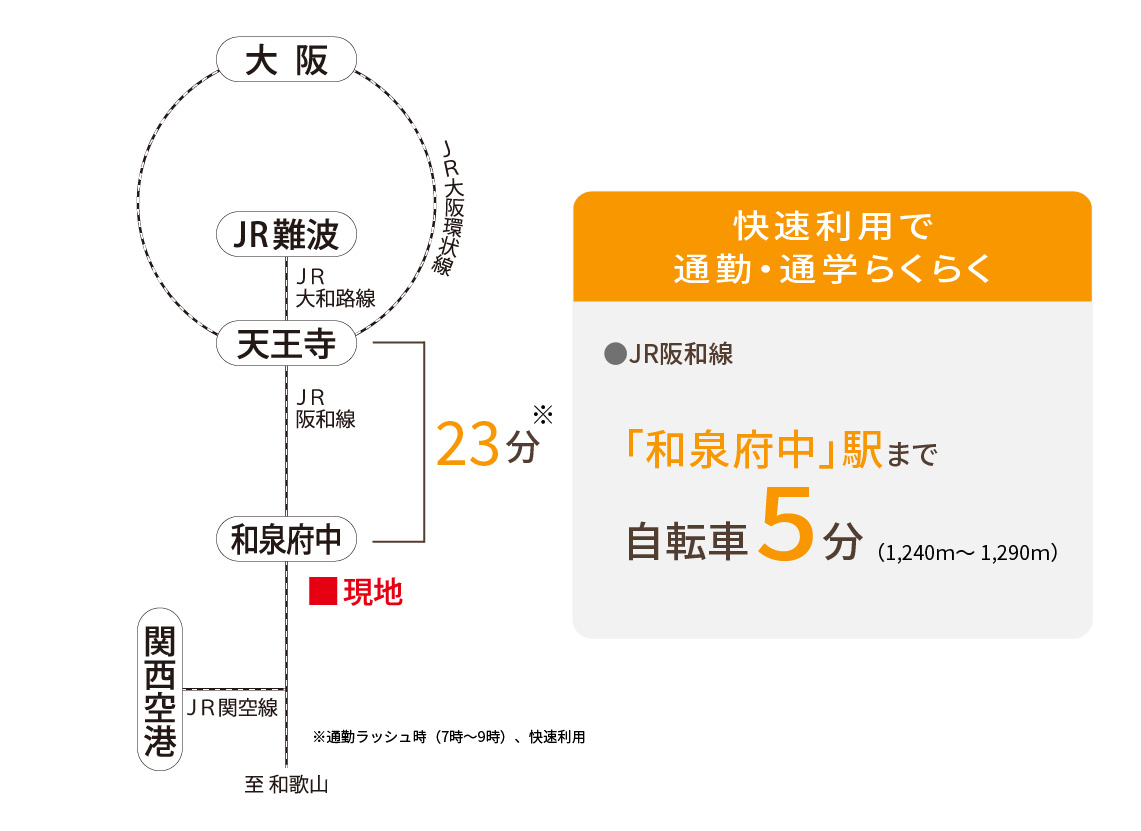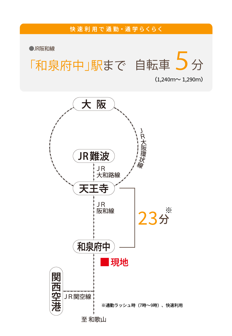 和泉市和気町/JR阪和線「和泉府中」駅まで自転車5分(1,240m~1,290m)