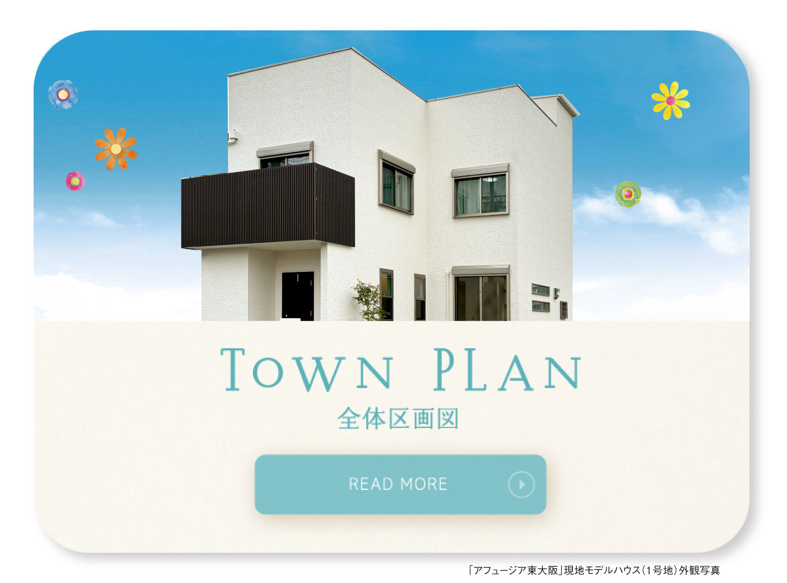 ※掲載の「アフュージア東大阪」現地モデルハウス1号地の外観写真・内装写真は、2024年2月・4月に撮影されたものです。(一部CG加工及び一部オプションを含む)掲載の外観写真の外構・植栽はモデルハウス仕様で標準仕様とは異なります。