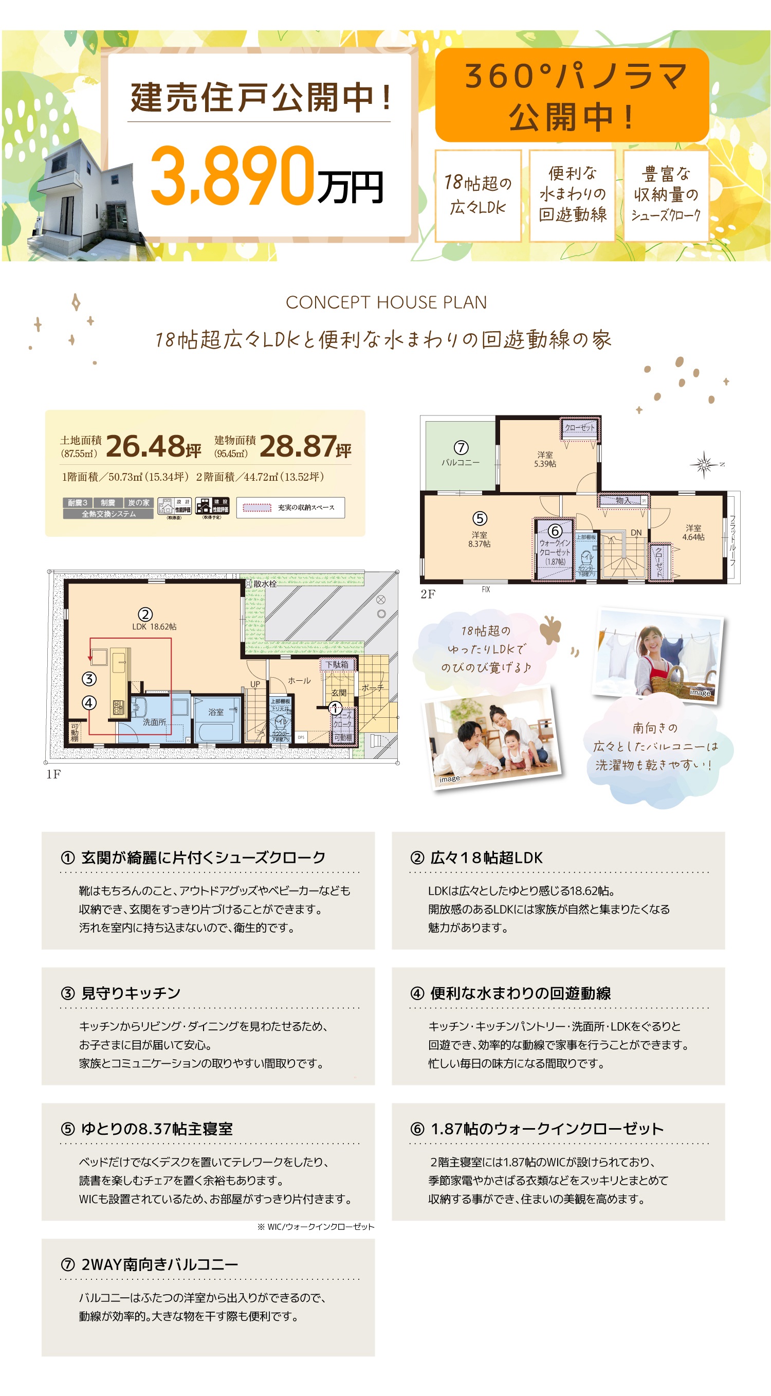 ※掲載の間取り図の外構・植栽はコンセプトハウス仕様で標準仕様とは異なります。