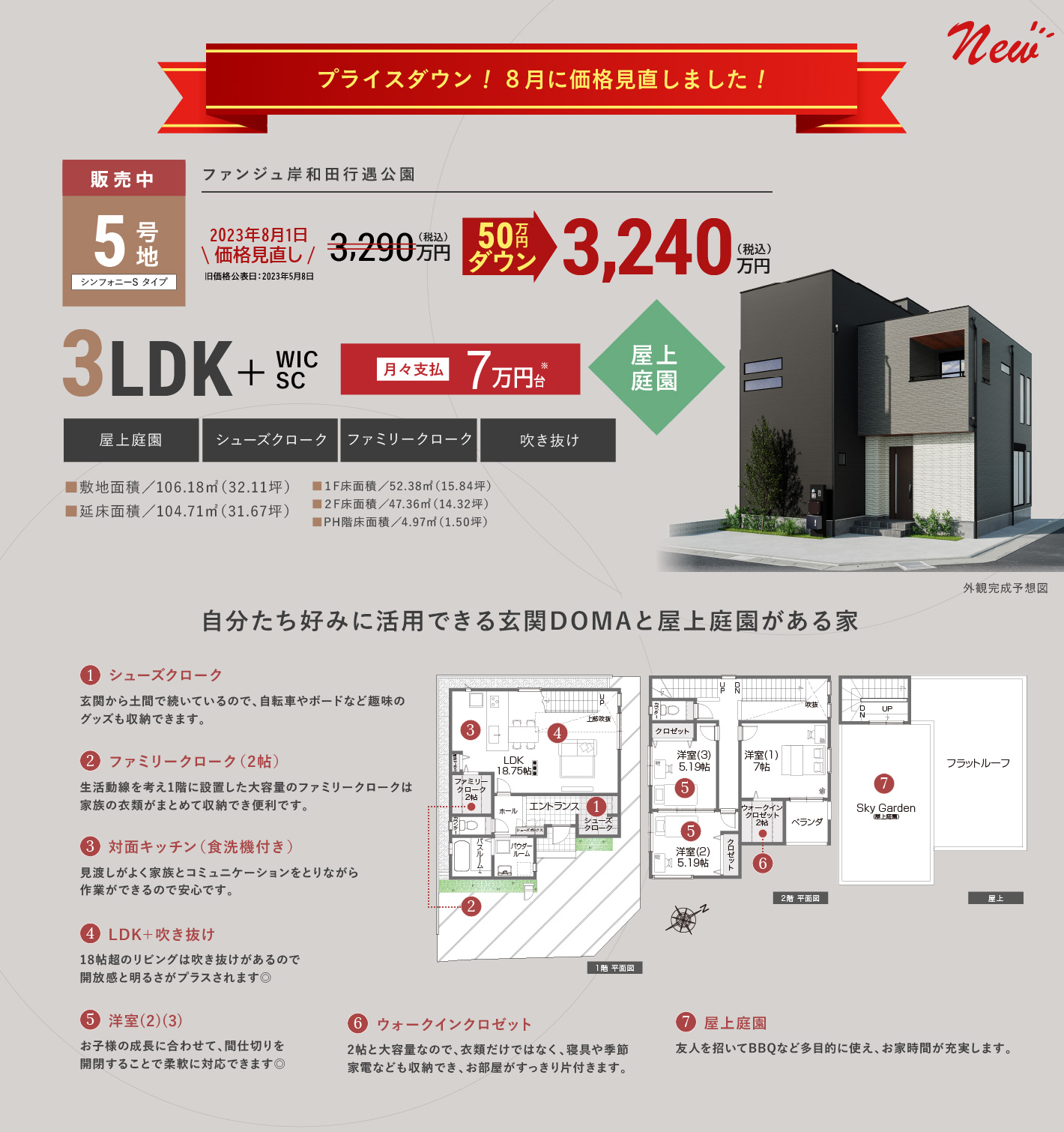 - 【ファンジュ岸和田行遇公園 】新築一戸建て17号地が140万円プライスダウンしました!