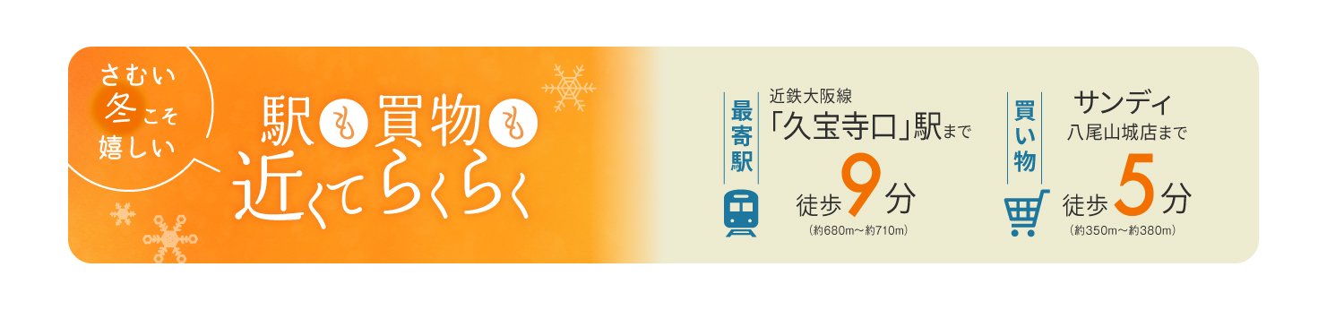 ※1:現地から近鉄大阪線「久宝寺口」駅まで徒歩9分(約680m~約710m)