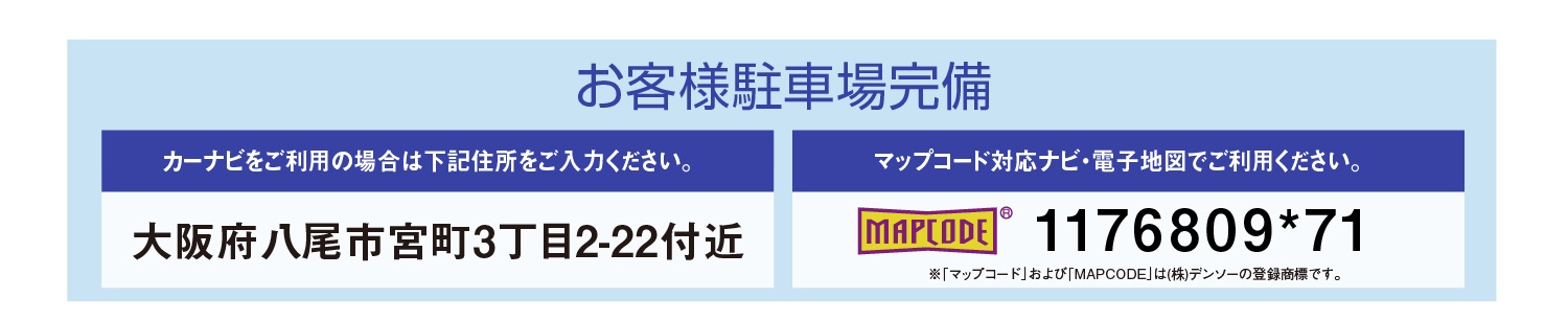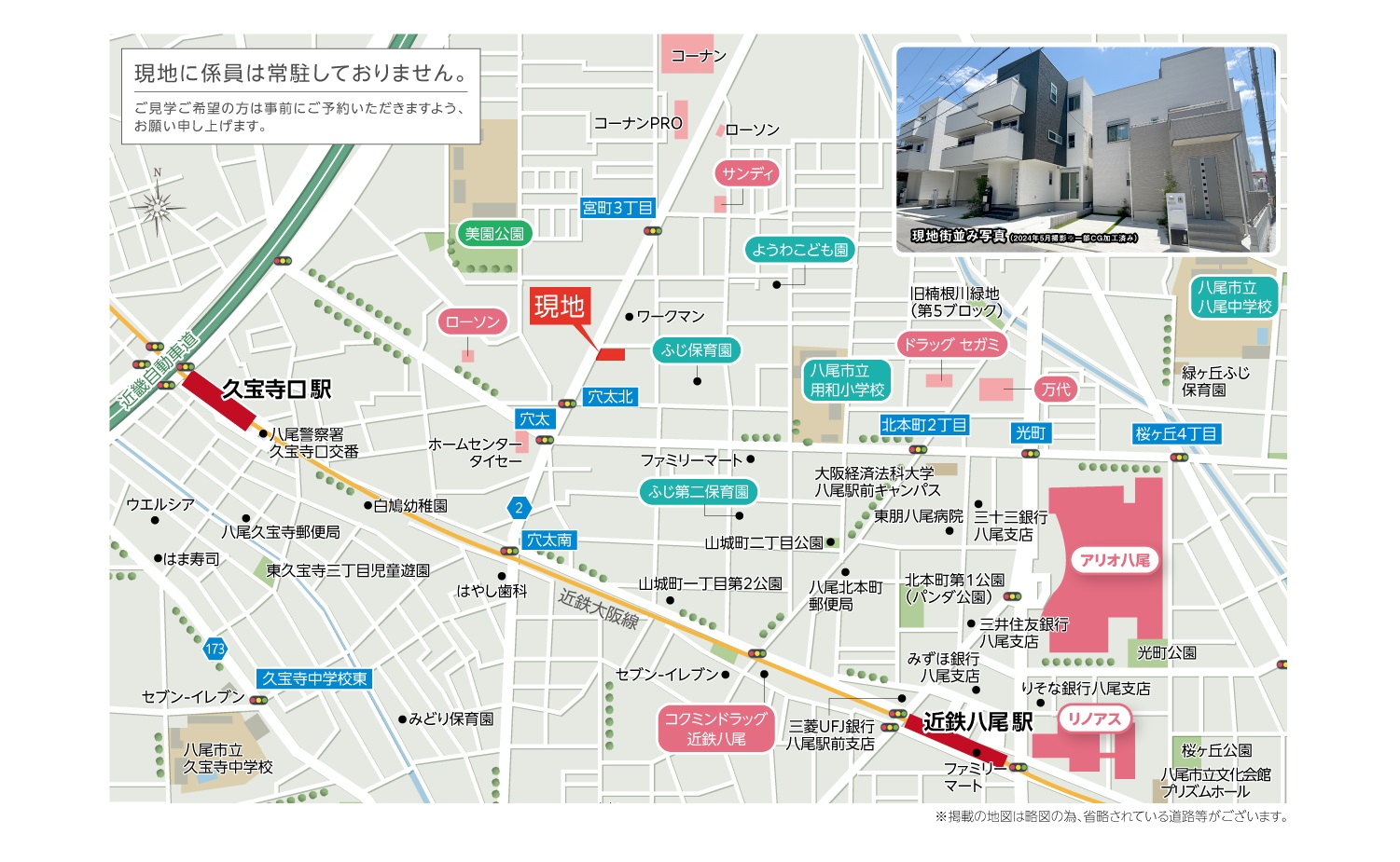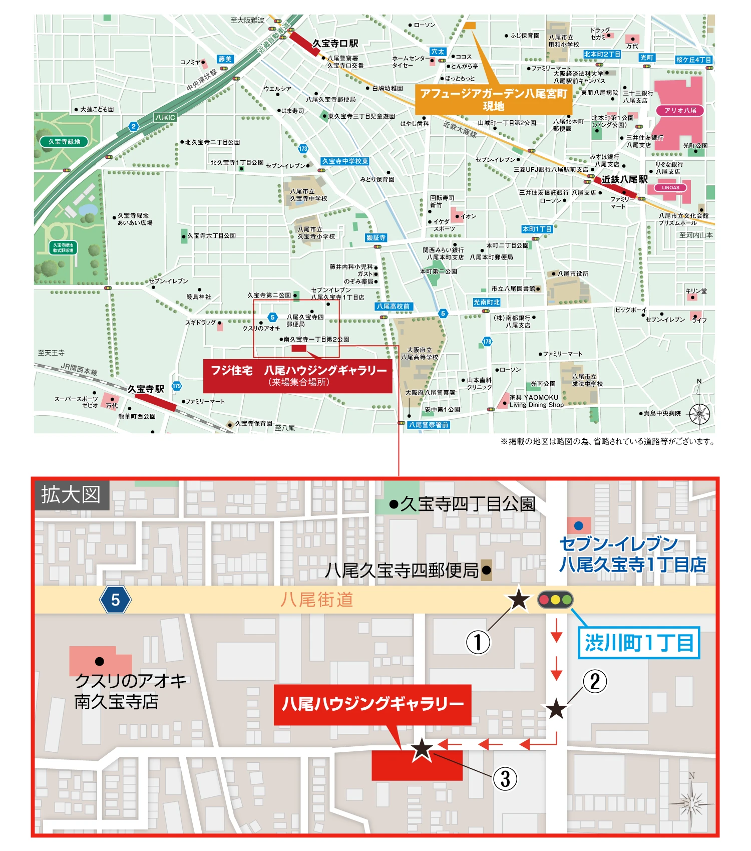 「アフュージアガーデン八尾宮町」現地案内図 ─来場集合場所─ 住所:八尾市宮町3丁目2−22付近