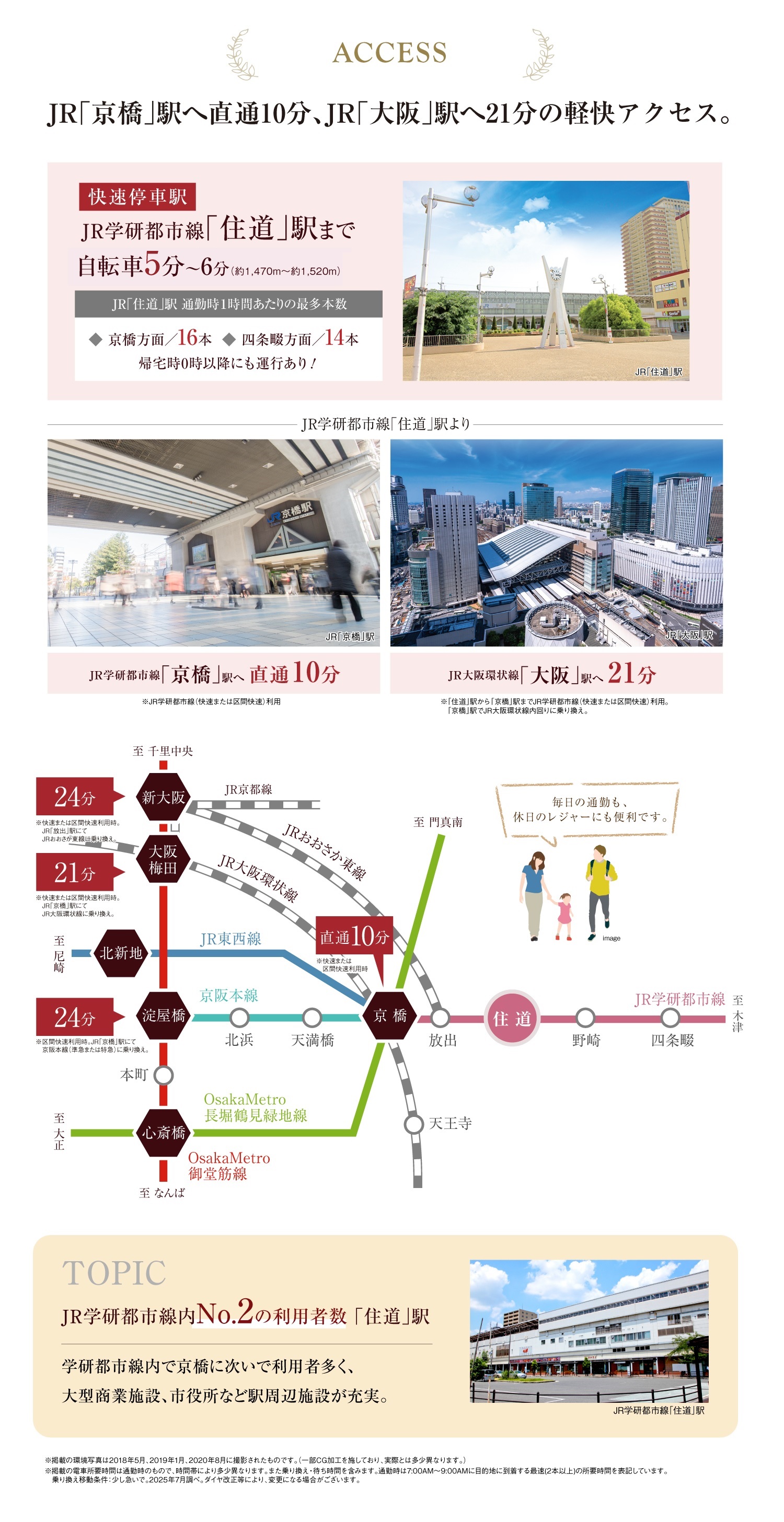 ※掲載の電車所要時間は通勤時のもので、時間帯により多少異なります。また乗り換え・待ち時間を含みます。通勤時は7:00AM~9:00AMに目的地に到着する最速(2本以上)の所要時間を表記しています。