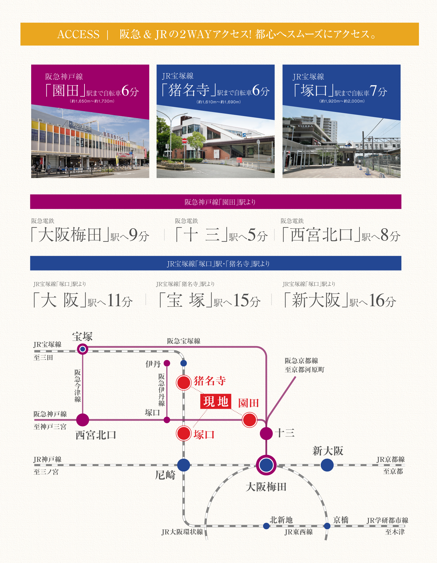 ※掲載の電車所要時間は通勤時のもので、時間帯により多少異なります。また乗り換え・待ち時間を含みます。通勤時は7:00AM~9:00AMに目的地に到着する最速の所要時間を表記しています。2025年2月・8月調べ、乗り換え移動条件:少し急いで。ダイヤ改正等により、変更になる場合がございます。
