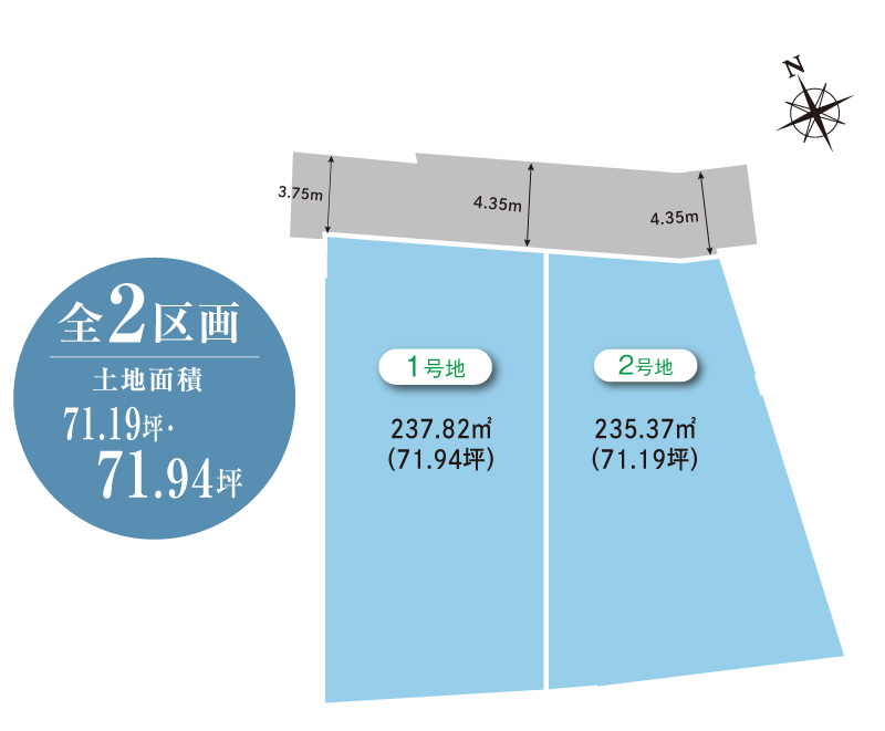 第1種低層住居専用地域に約71坪以上の土地広分譲地が誕生!