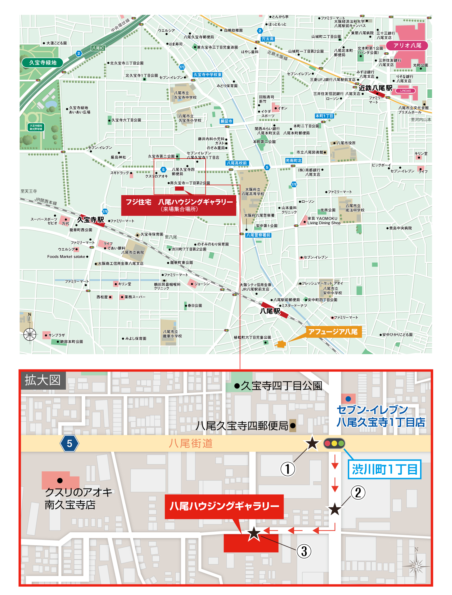 □フジ住宅 八尾ハウジングギャラリーご案内地図