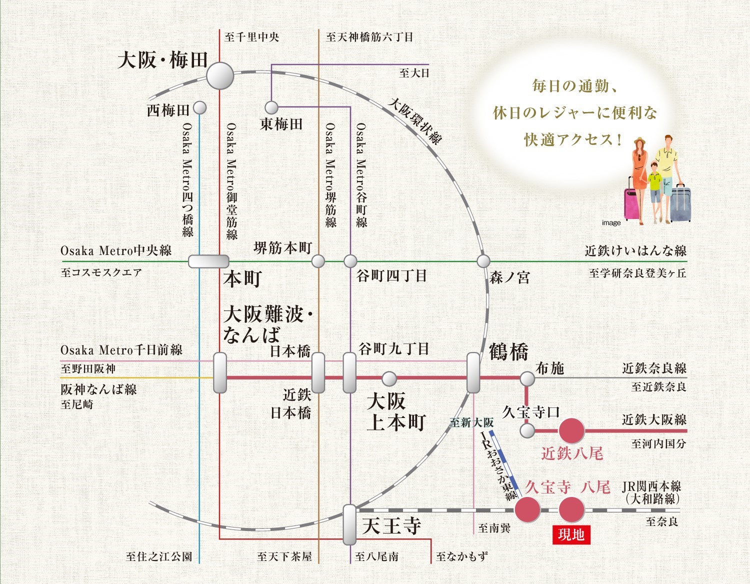 JR天王寺駅までは快速利用でわずか約5分。さらに、大阪駅・新大阪駅・JR難波駅など主要ビジネス拠点へも直通でスムーズにアクセス可能です。