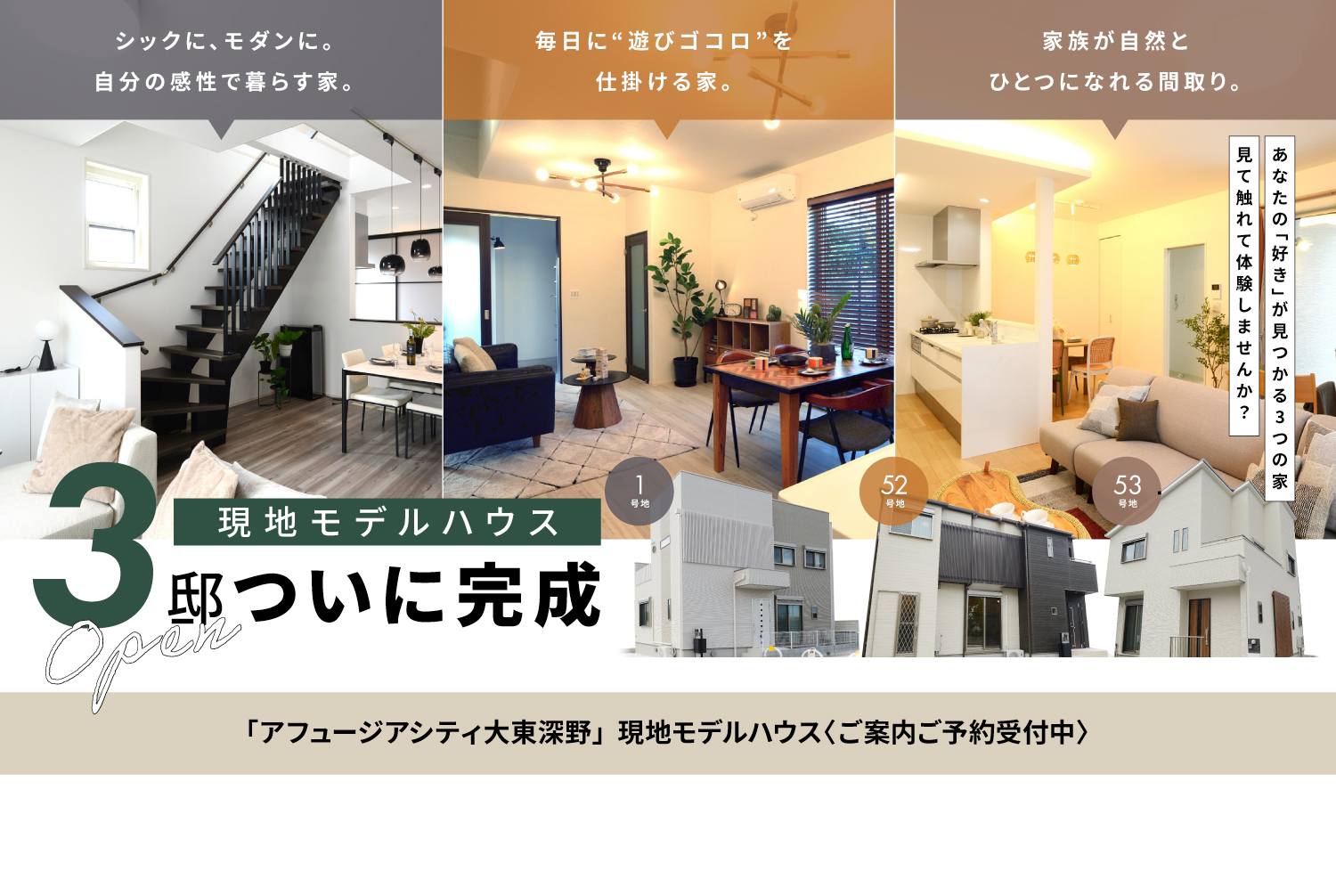 ※掲載の外観・内観写真、間取り図は「アフュージアシティ大東深野」52号地モデルハウスのものです。(2025年10月、11月撮影/一部CG加工およびオプションを含む)