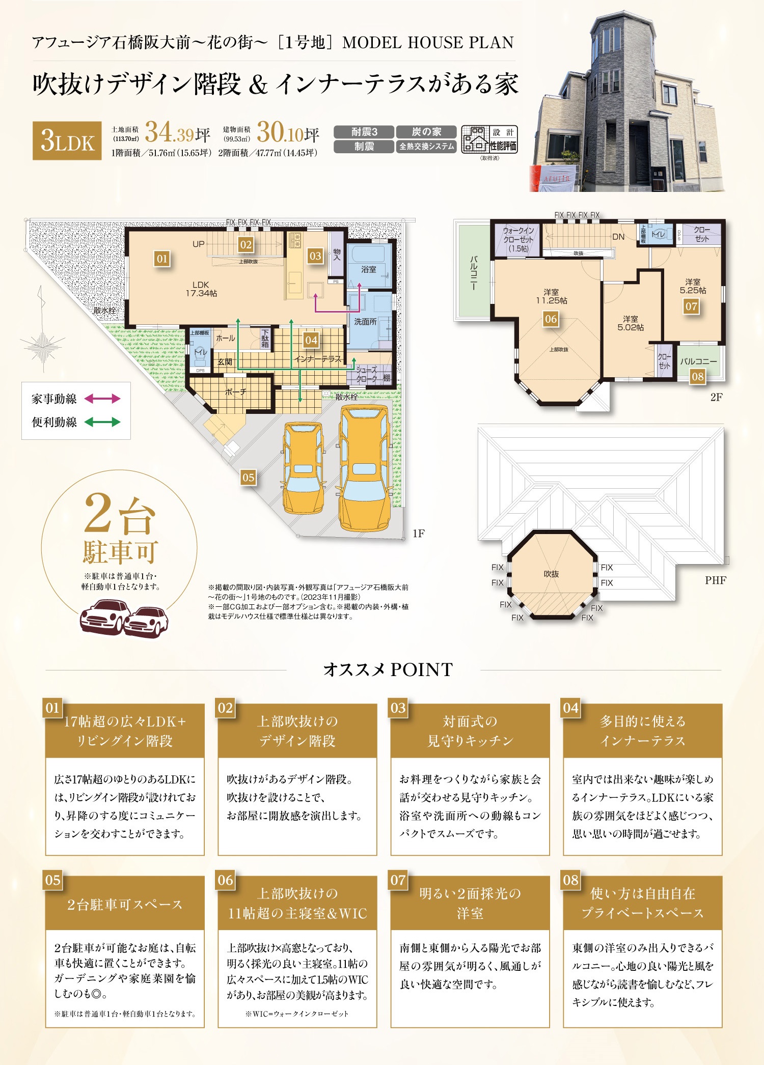 ※掲載の外観写真・内装写真は「アフュージア石橋阪大前〜花の街〜」1号地モデルハウスにて2023年11月に撮影されたものです。