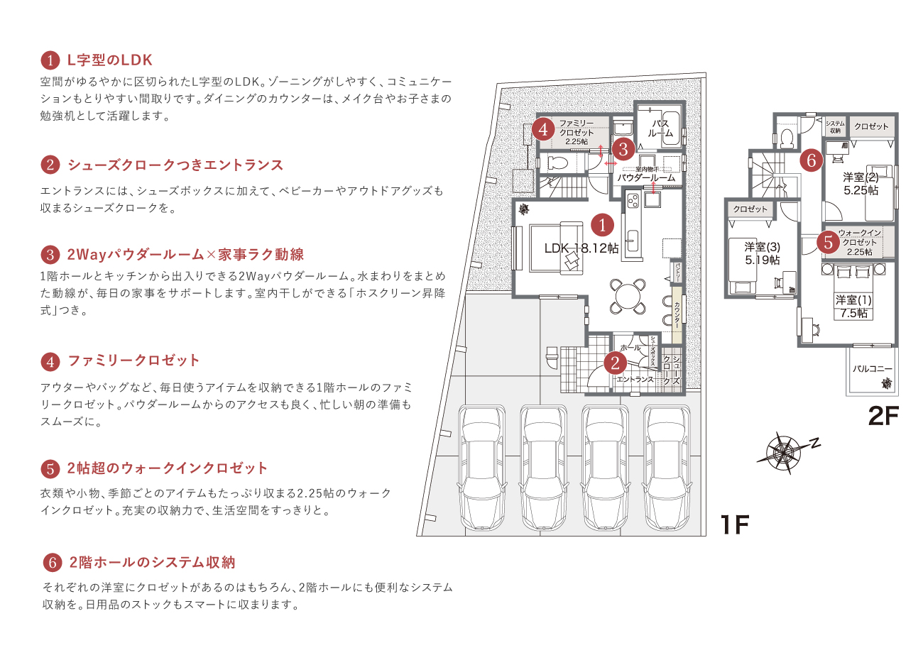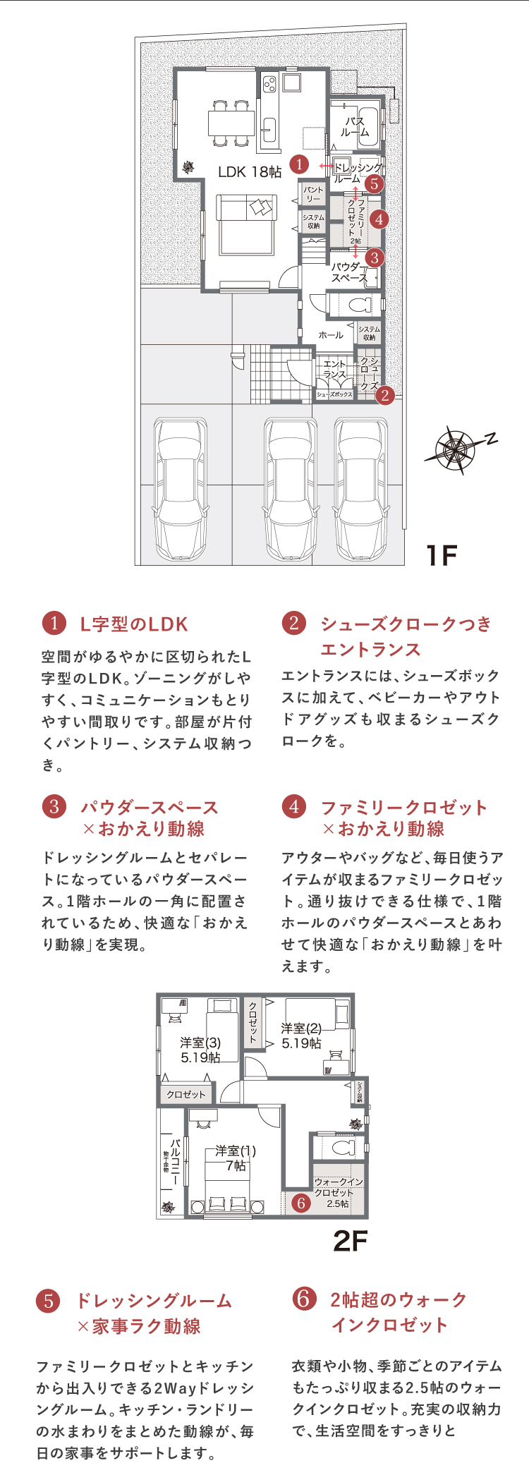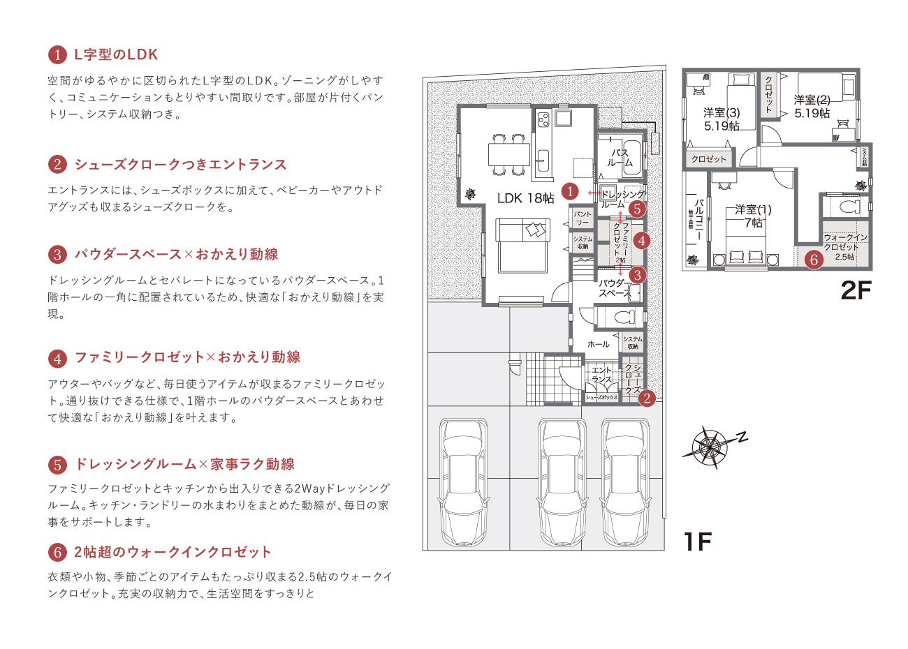 ●自由度の高さ:43坪以上の土地なので、2階建ても平屋もお好みに合わせてお選びいただけます。