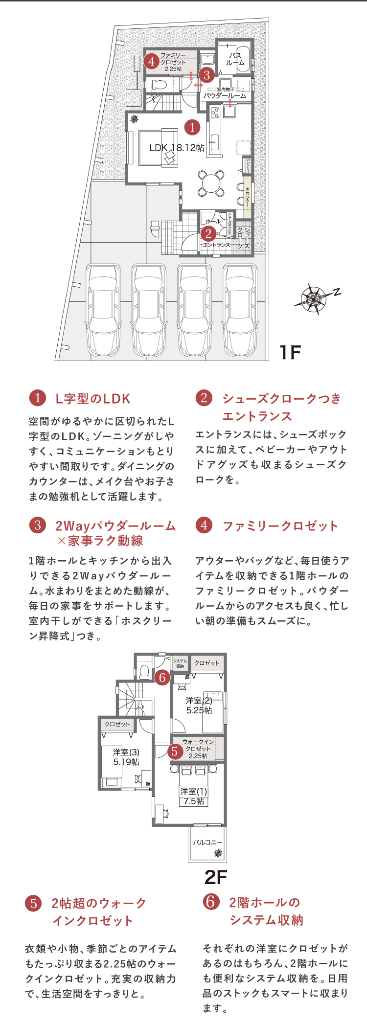 7号地:98.55m2(29.81坪)土地面積 2号地:155.23m2(46.95坪)