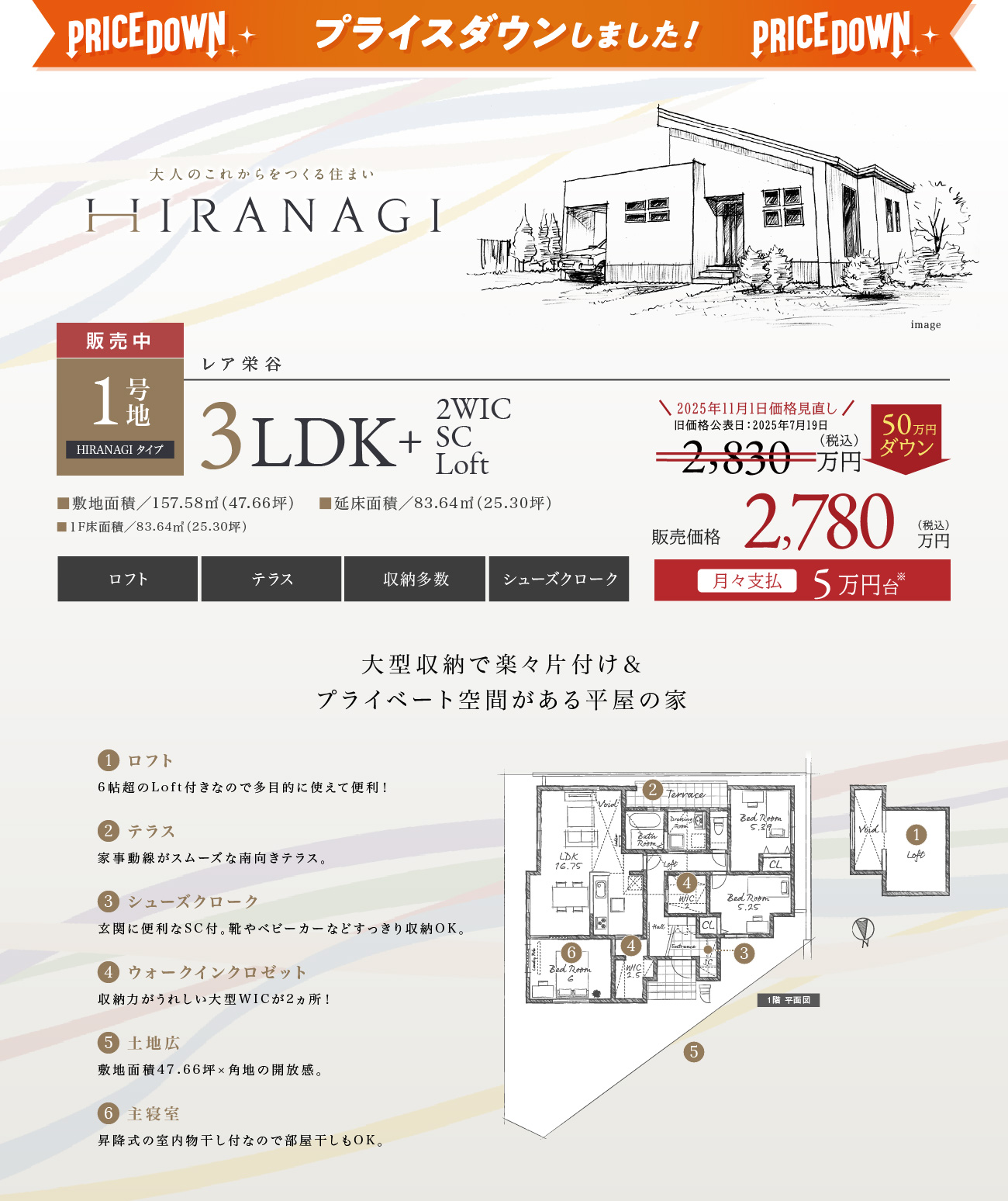 平屋住宅50万円プライスダウン!